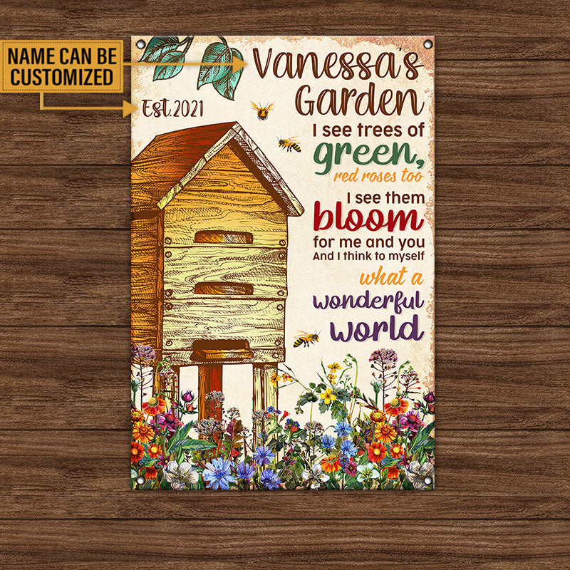 Personalized Bee Garden What A Wonderful World Classic Metal Sign
