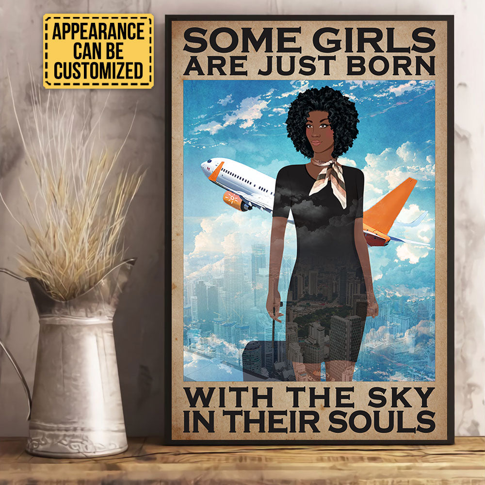 Personalized Flight Attendant Some Girls Are Just Born With The Sky In Their Souls Poster & Canvas