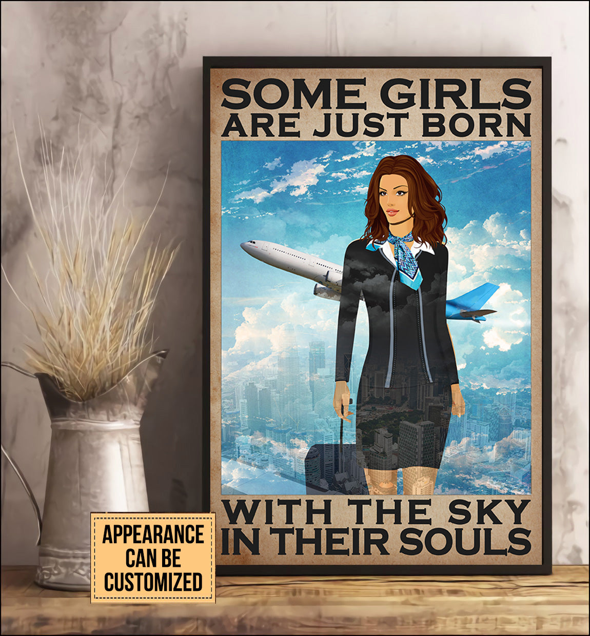 Personalized Flight Attendant Some Girls Are Just Born With The Sky In Their Souls Poster & Canvas