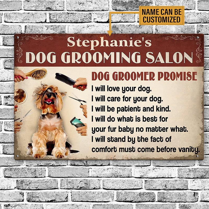 Personalized Dog Grooming Salon Dog Groomer Promise Metal Sign
