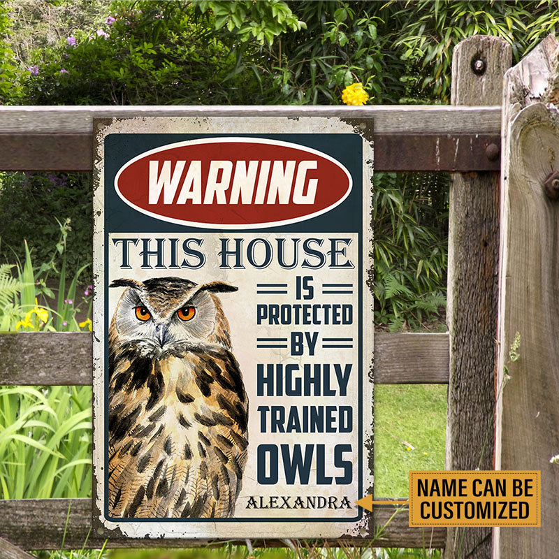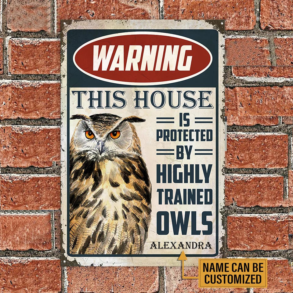 Personalized This House Is Protected By Highly Trained Owls Metal Sign