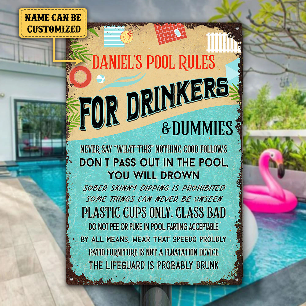 Personalized Pool Rules For Drinkers And Dummies Metal Sign