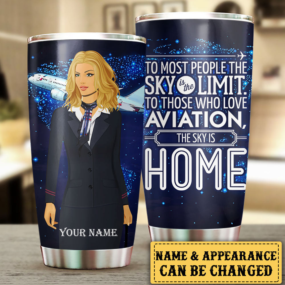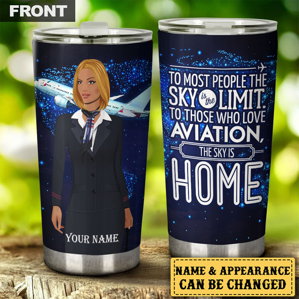 Personalized The Sky Is Home Flight Attendant Tumbler
