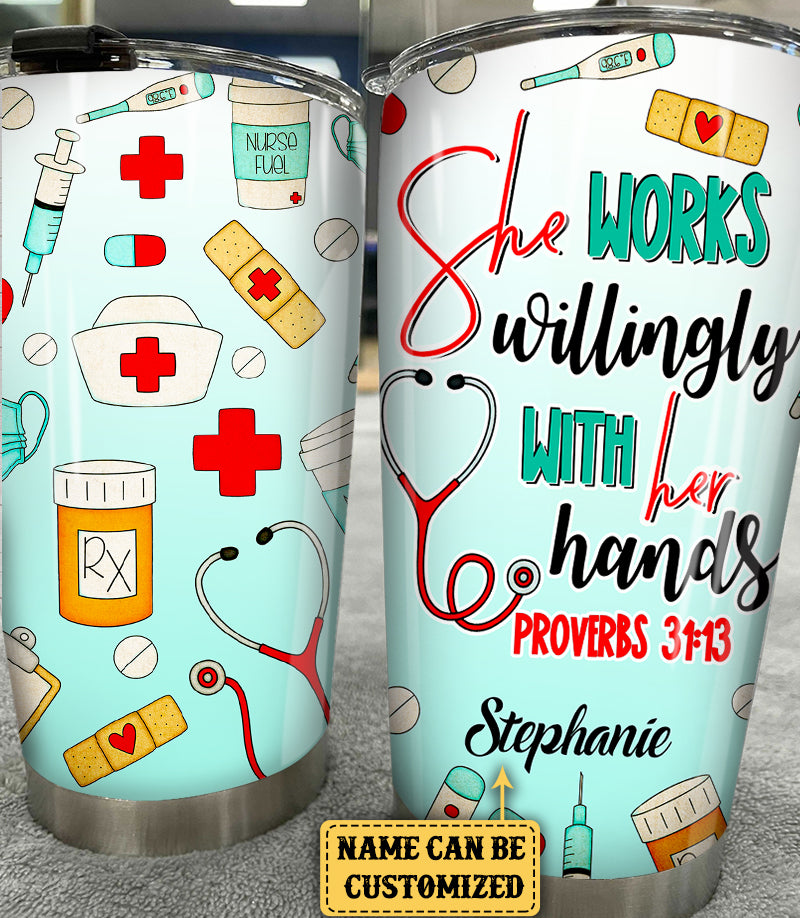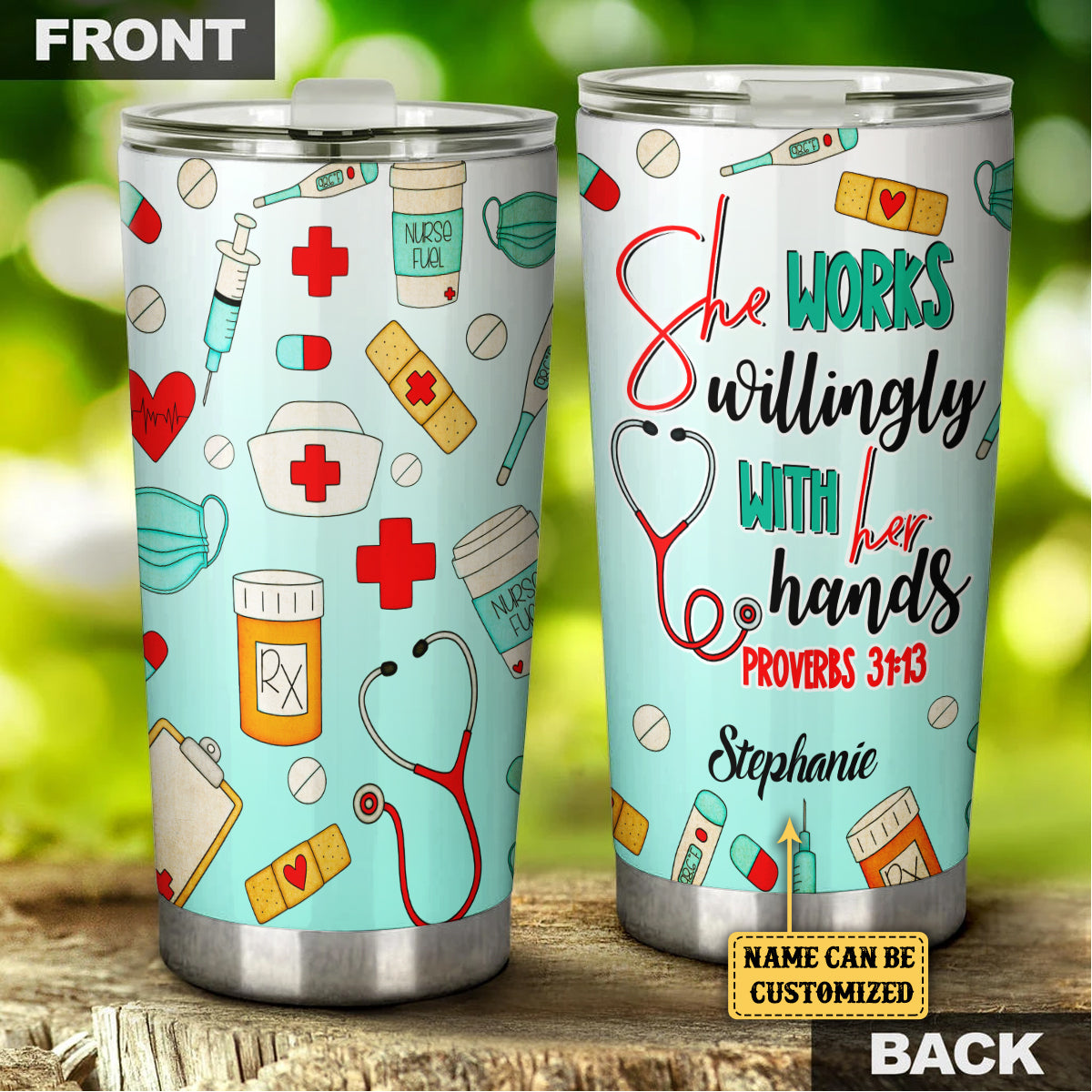 Personalized Nurse She Works Willingly With Her Hands Tumbler