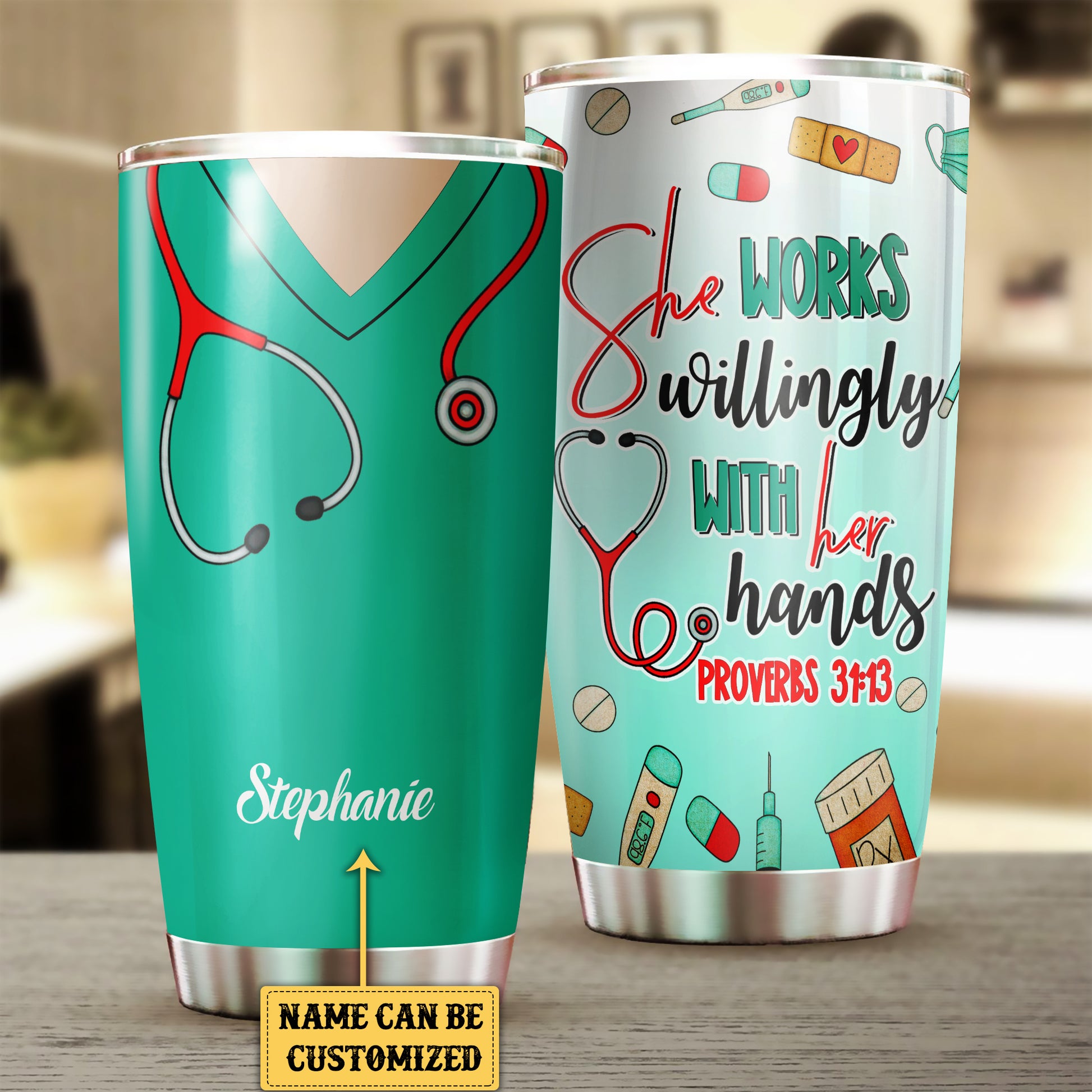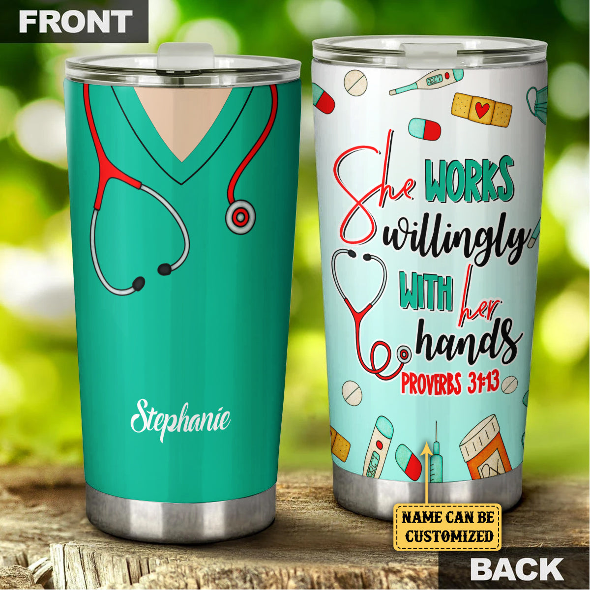 Personalized Nurse She Works Willingly With Her Hands Tumbler