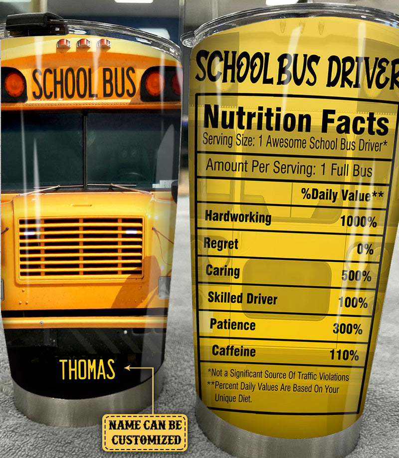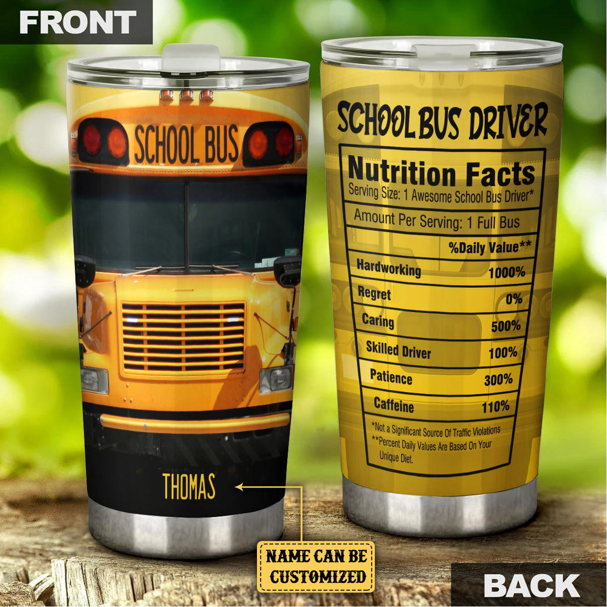 Personalized School Bus Driver Nutritional Facts Tumbler