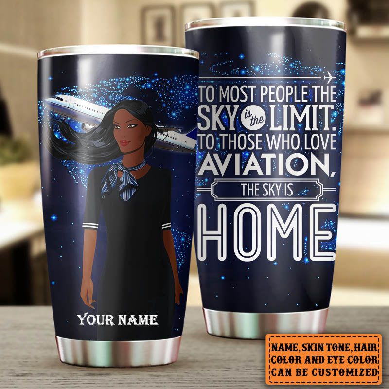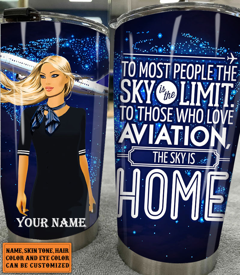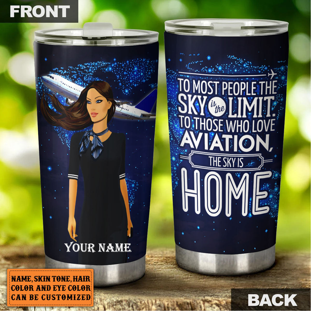 Personalized The Sky Is Home Flight Attendant Tumbler