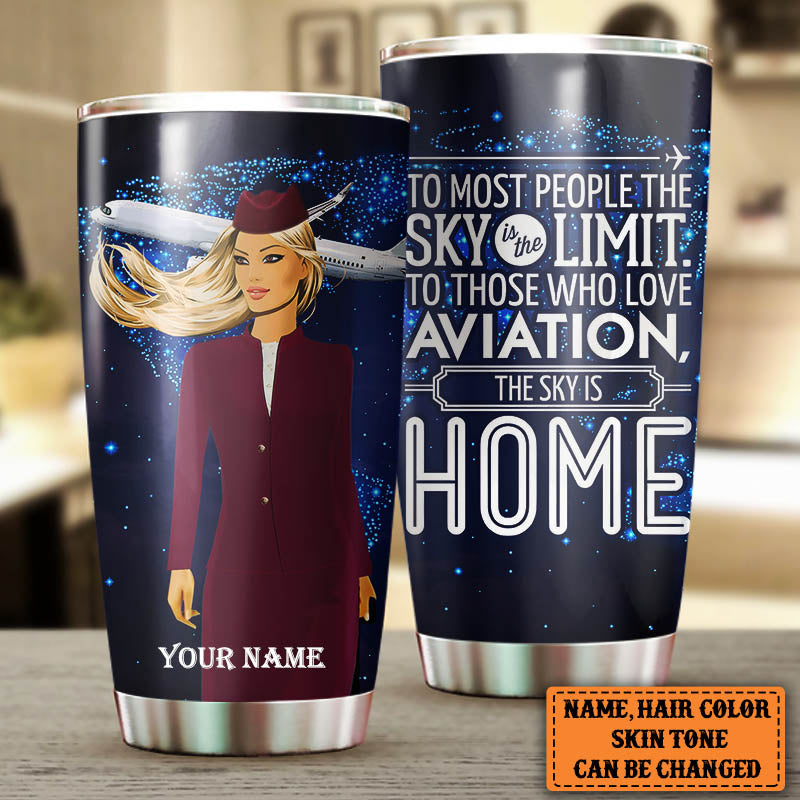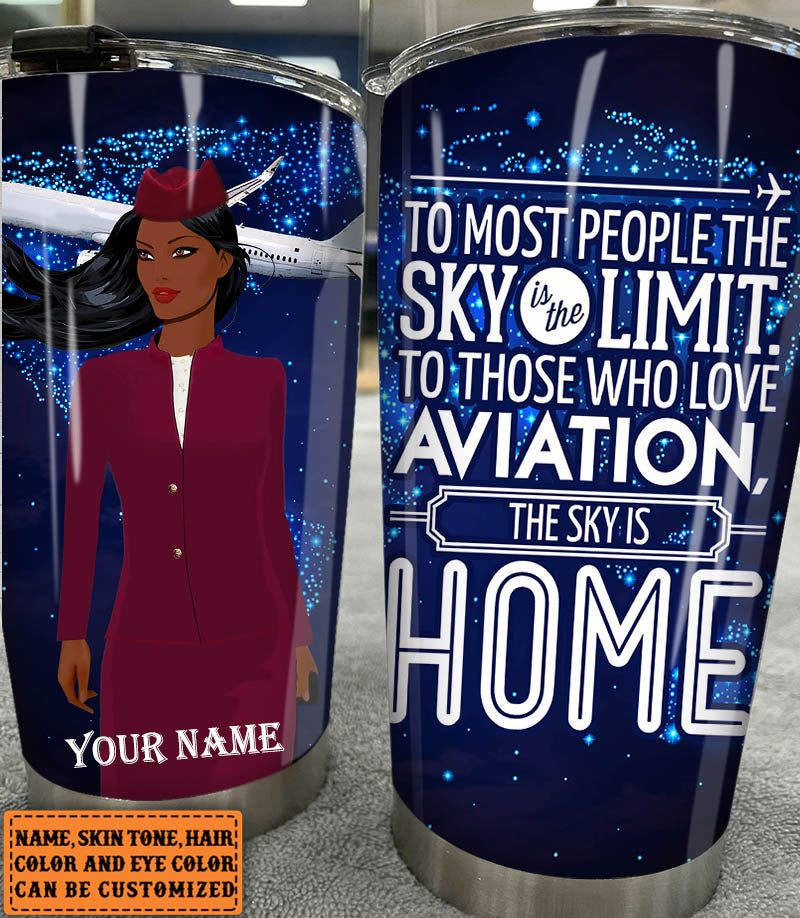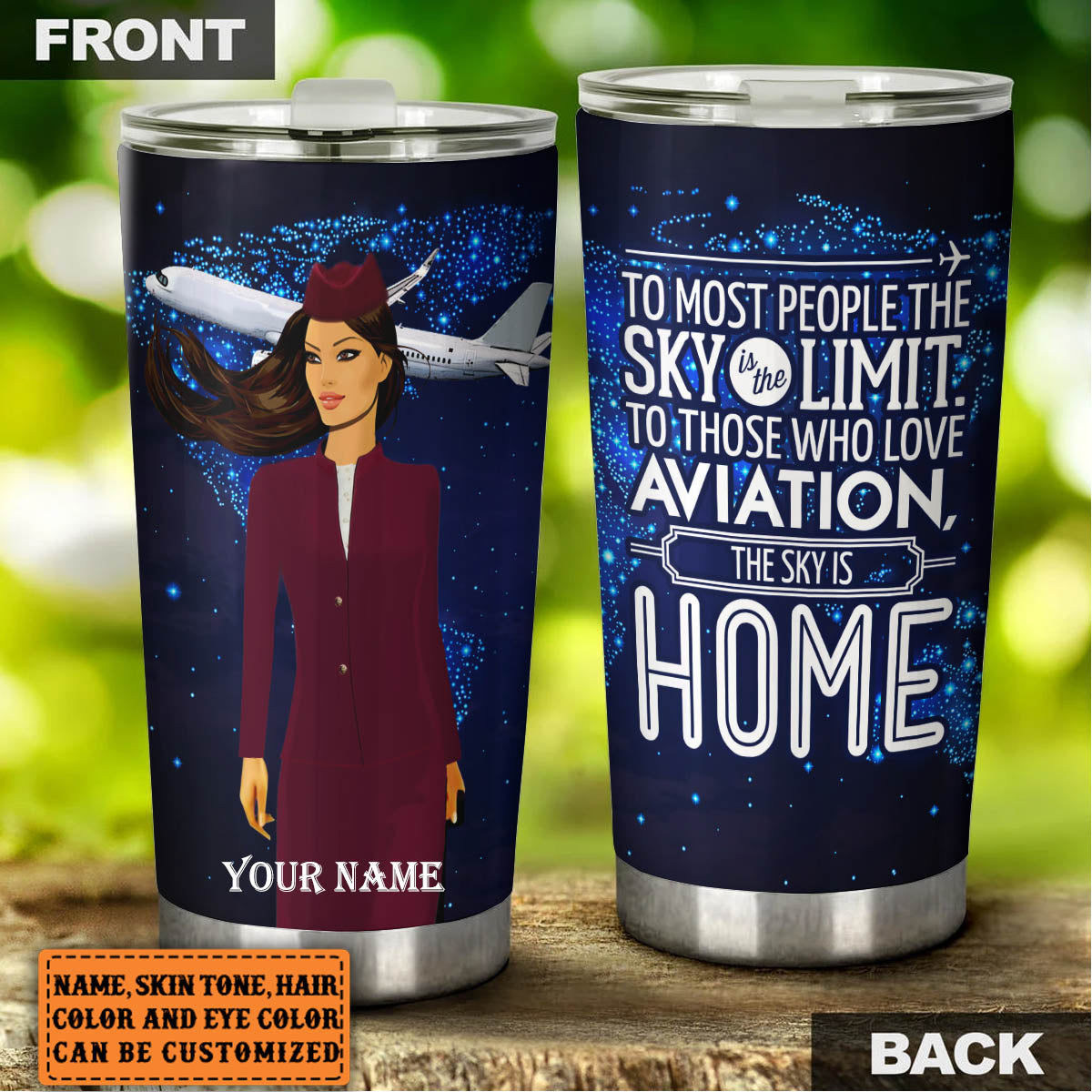 Personalized The Sky Is Home Flight Attendant Tumbler