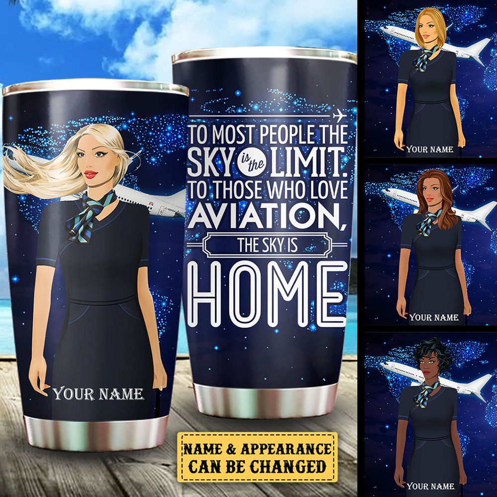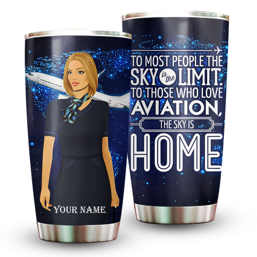 The Sky Is Home Flight Attendant - Personalized Tumbler