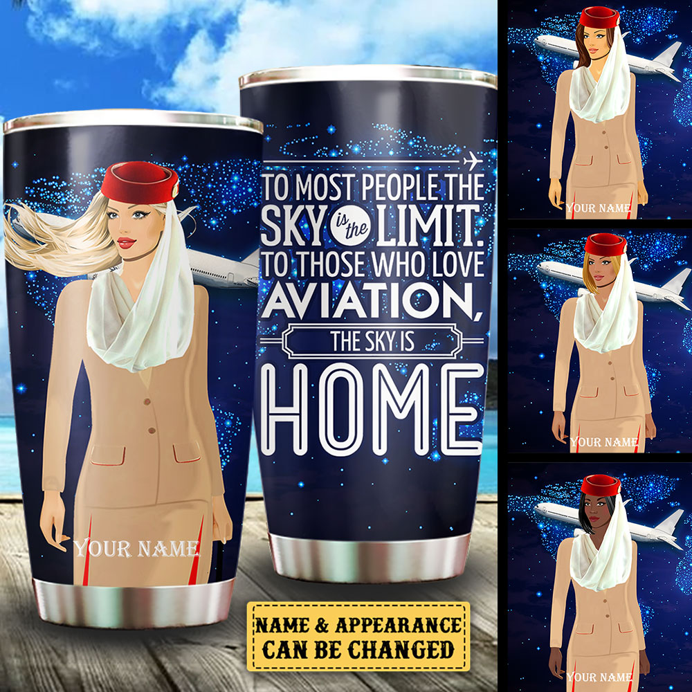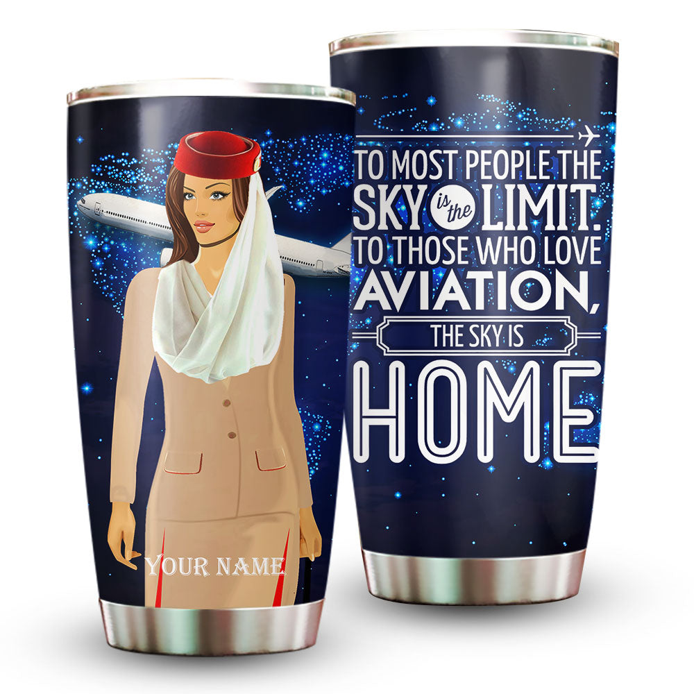 The Sky Is Home Flight Attendant - Personalized Tumbler