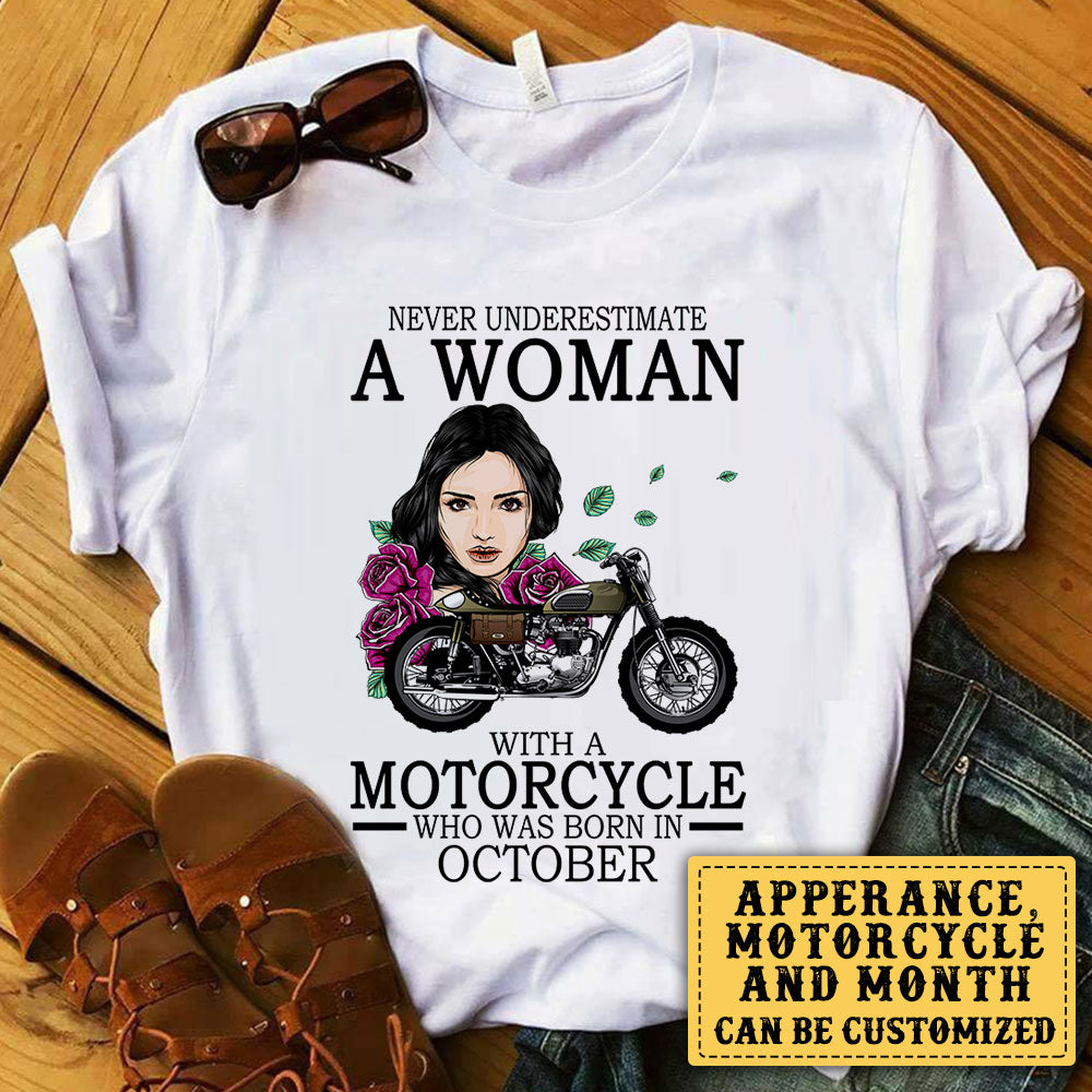 Personalized Never Underestimate A Woman With A Motorcycle Birthday Shirt