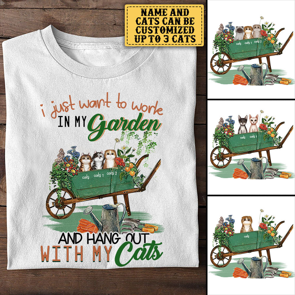 Personalized I Just Want To Work In My Garden And Hang Out With My Cats Shirt