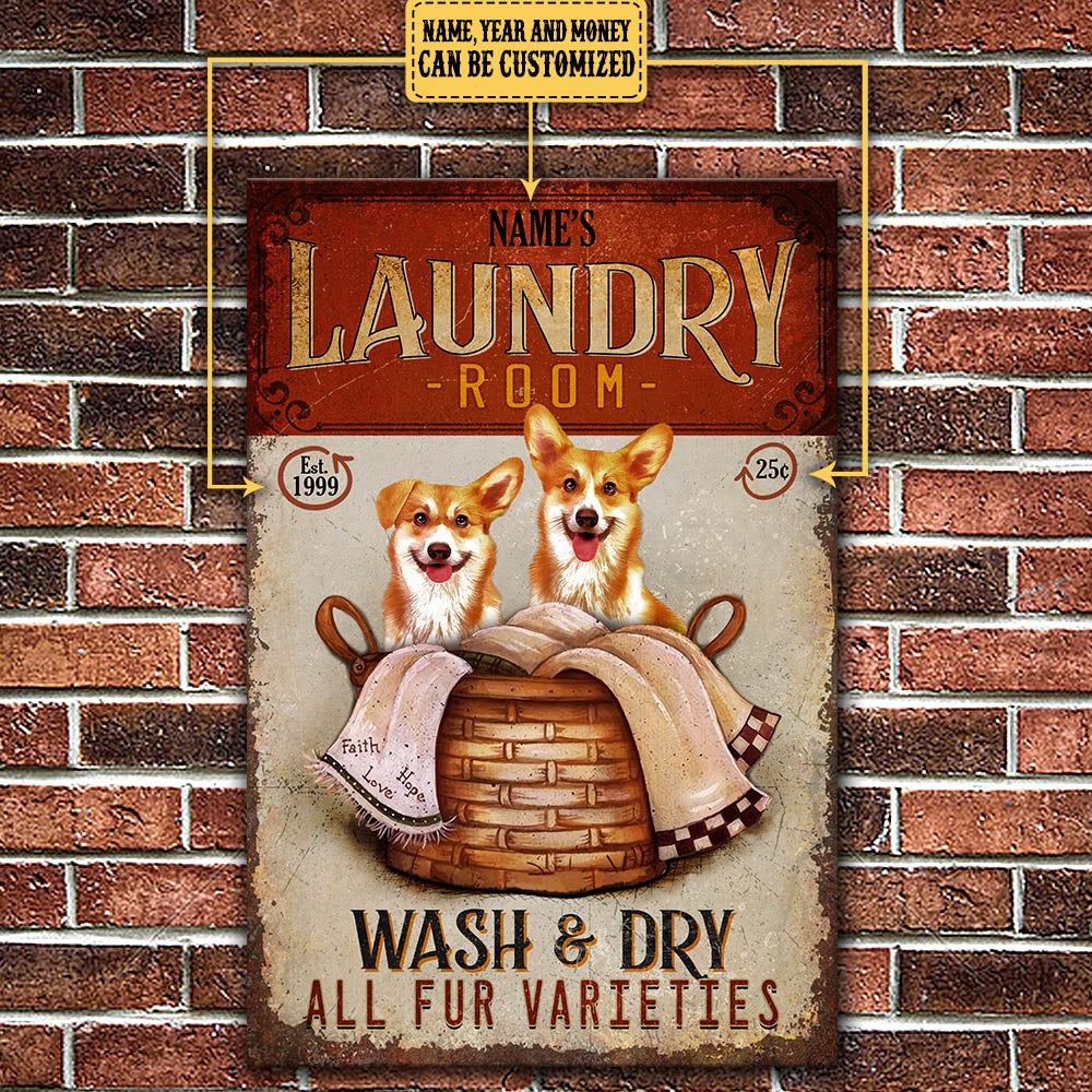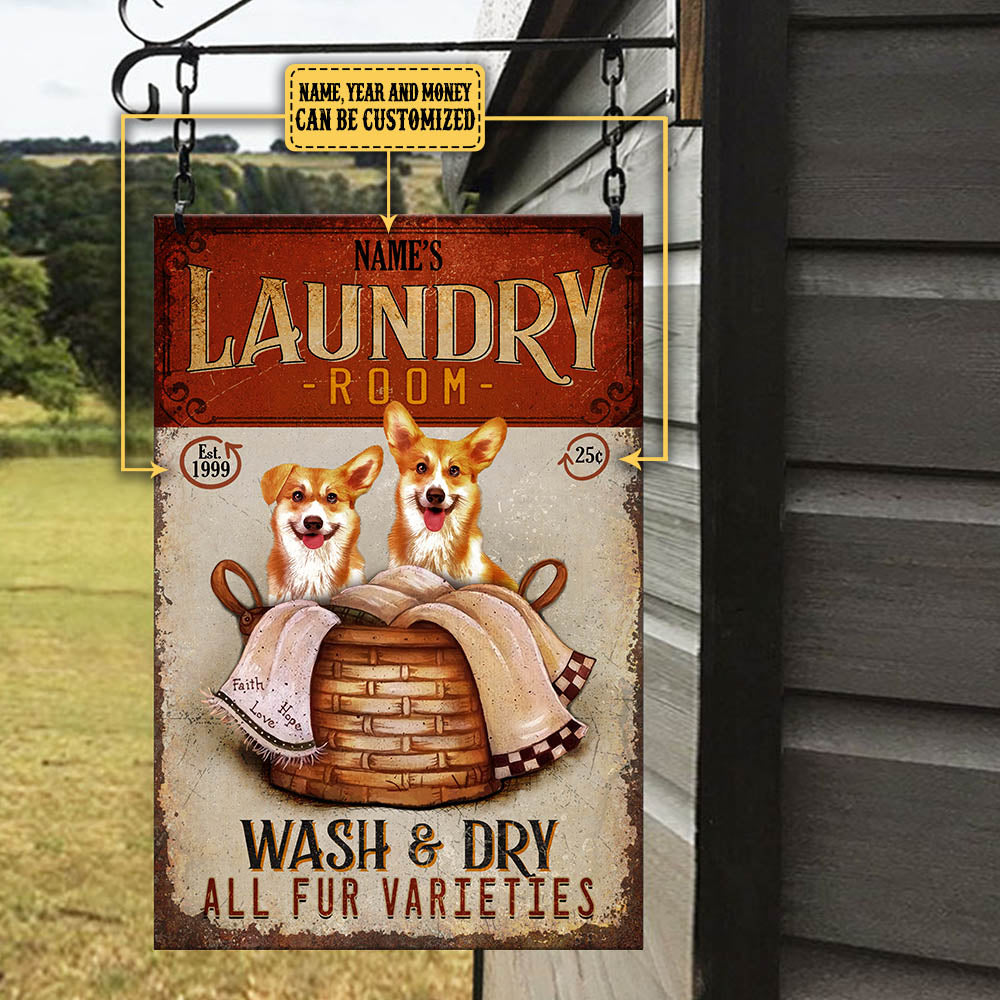 Personalized Laundry Room Wash And Dry All Fur Varieties Corgi Metal Sign