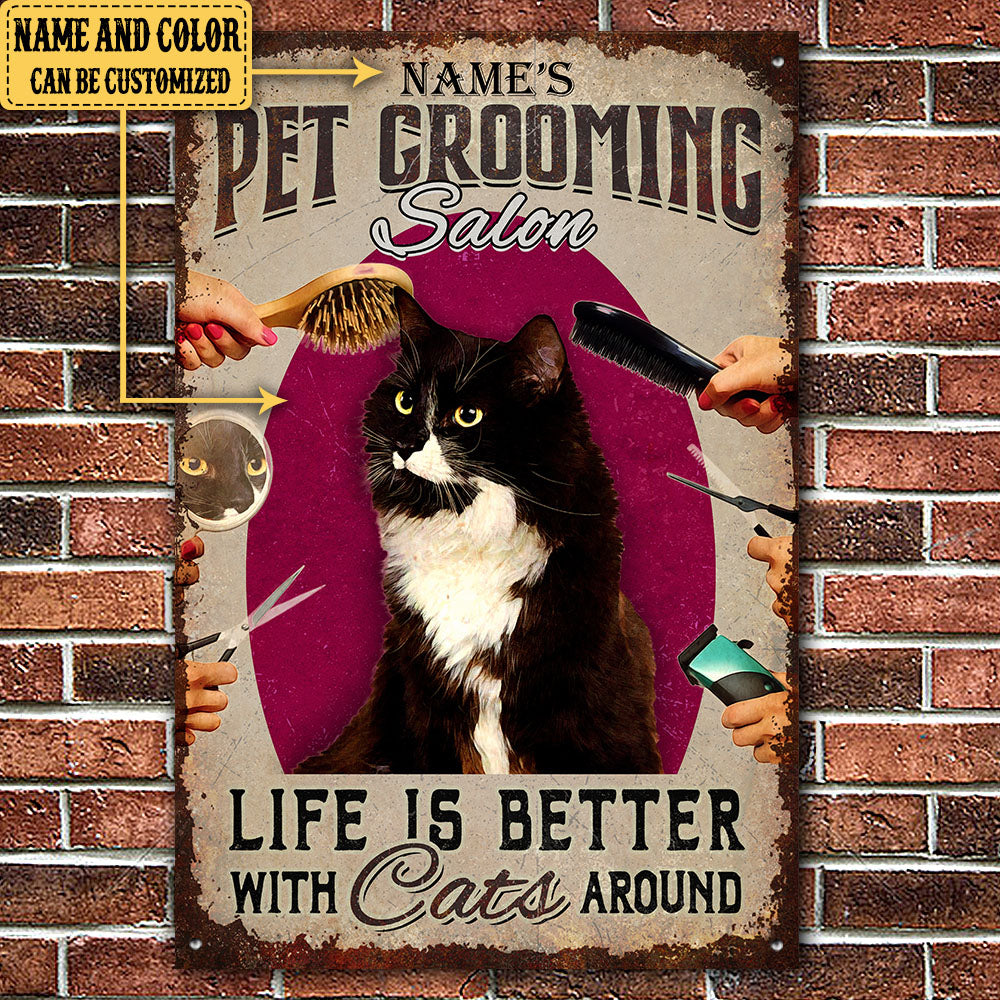 Personalized Pet Grooming Salon Life Is Better With Cats Around Metal Sign