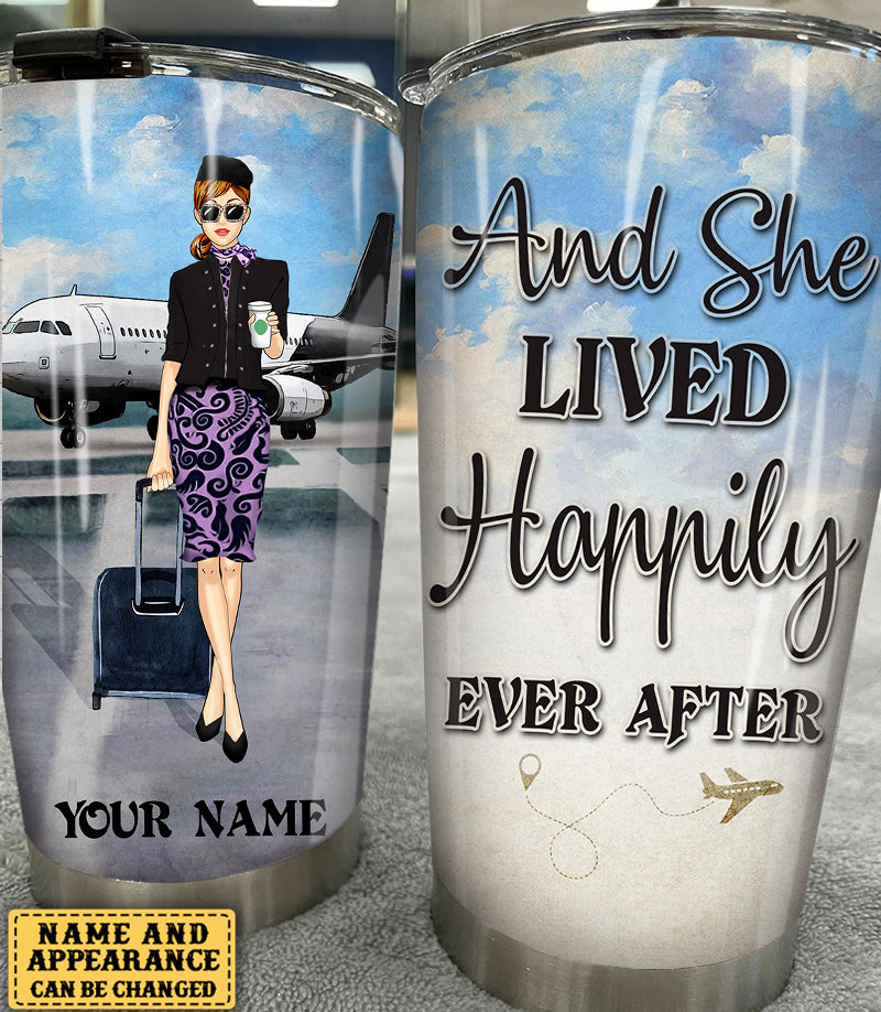 Personalized Flight Attendant And She Lived Happily Ever After Tumbler