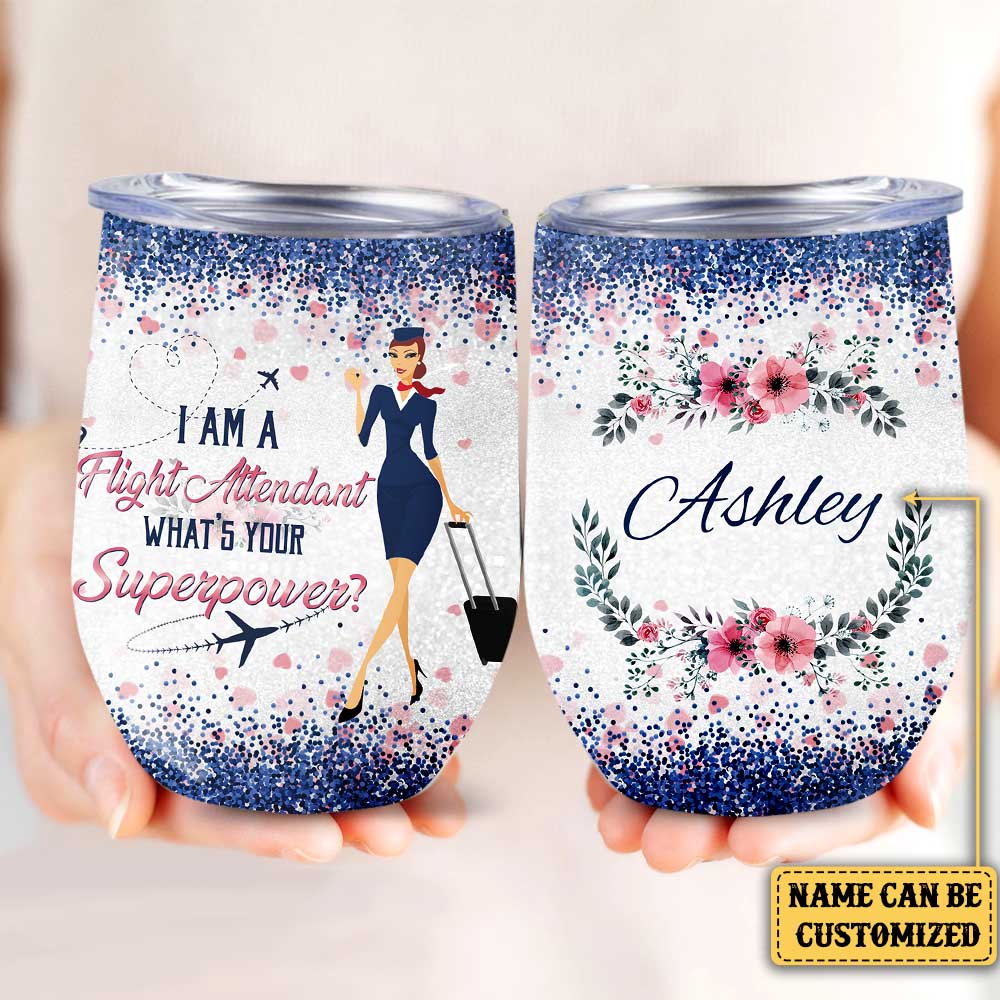 Personalized I'm A Flight Attendant What's Your Superpower Wine Tumbler