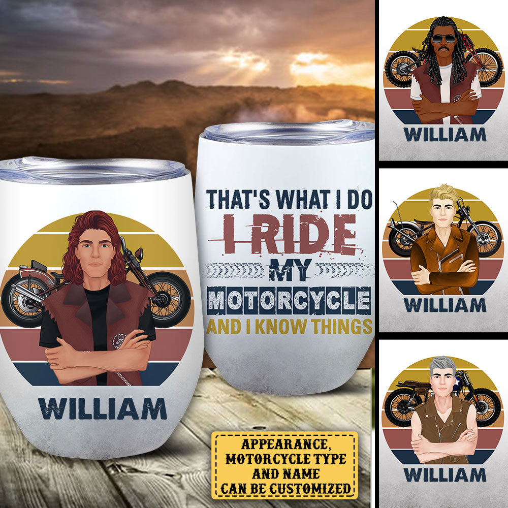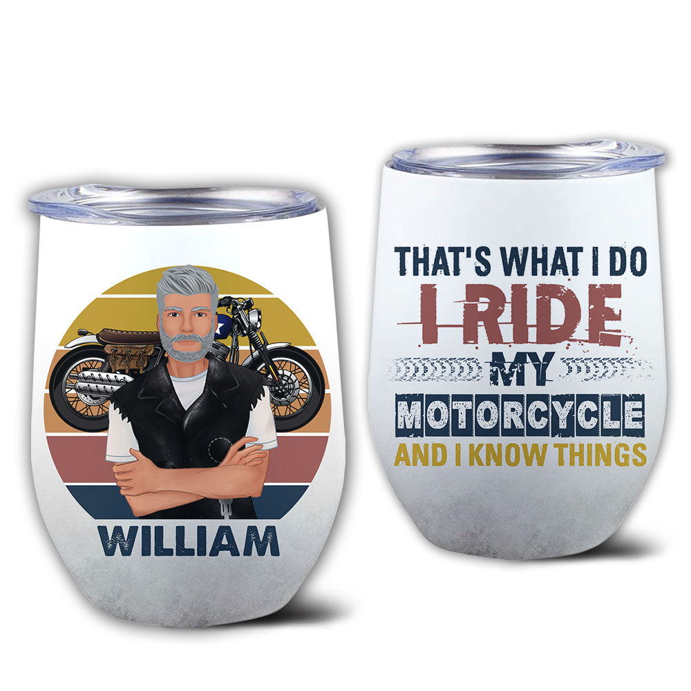 That's What I Do I Ride My Motorcycle And I Know Things - Personalized Wine Tumbler