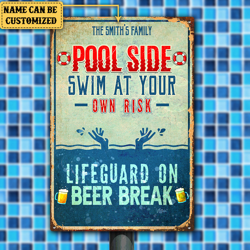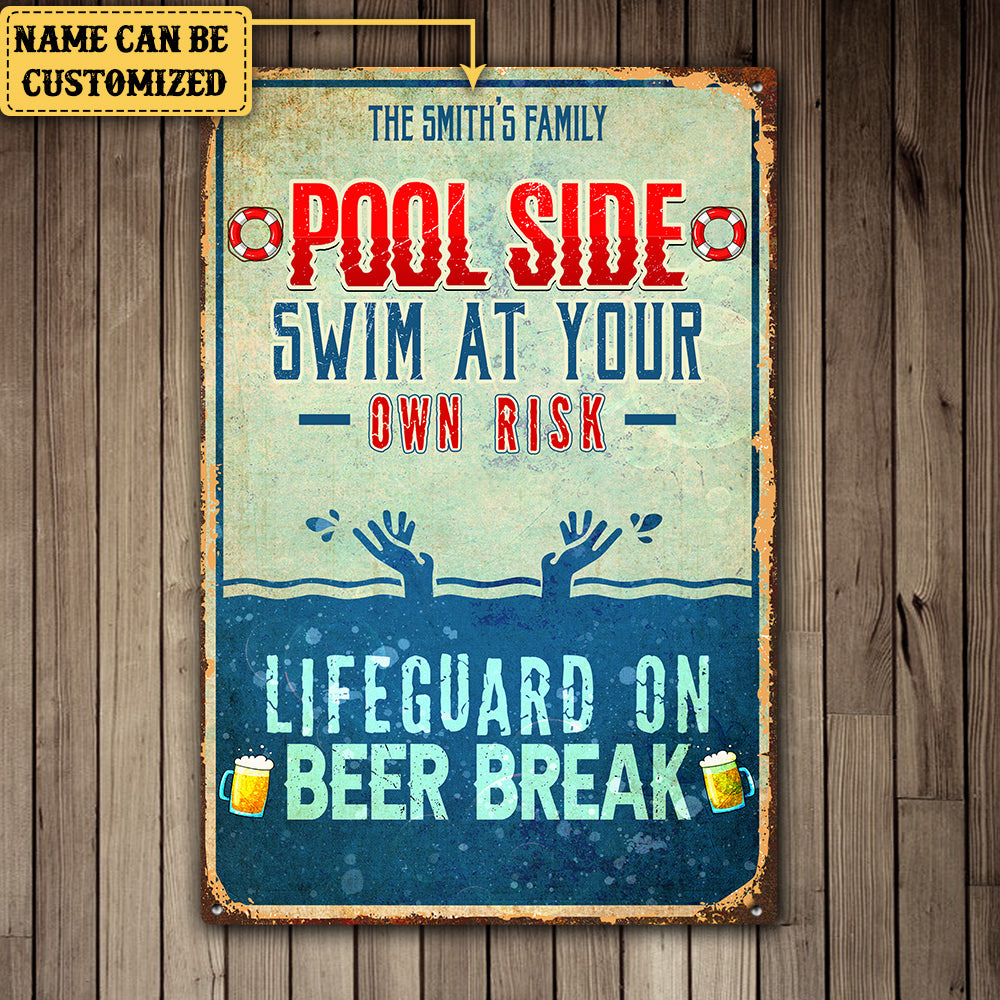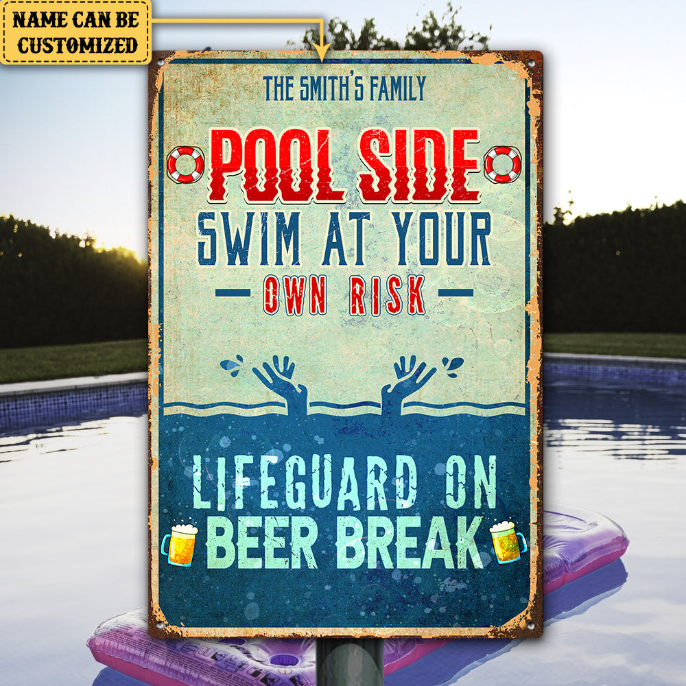 Personalized Pool Side Swim At Your Own Risk Metal Sign