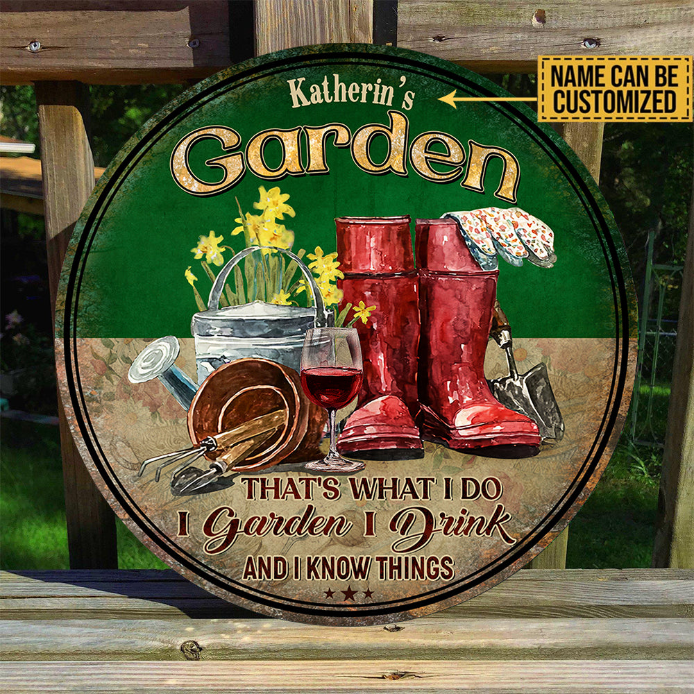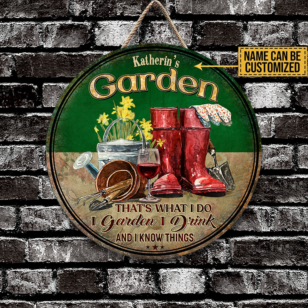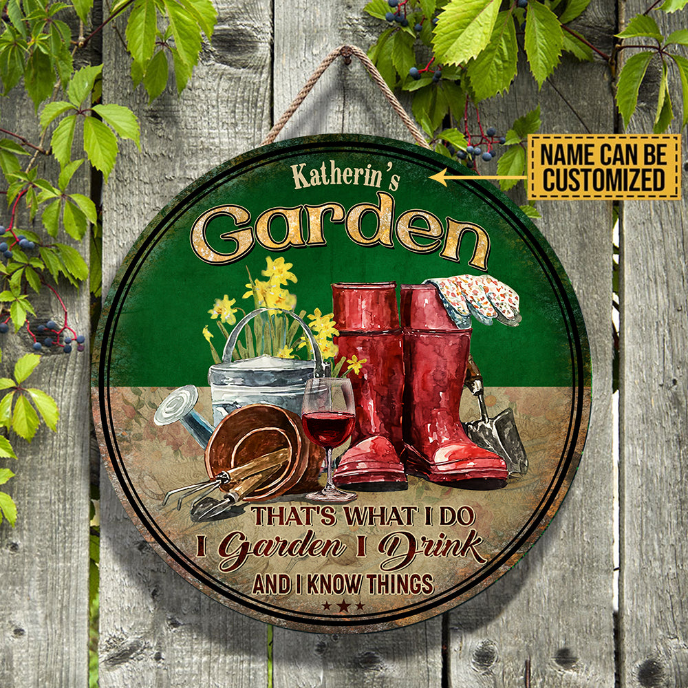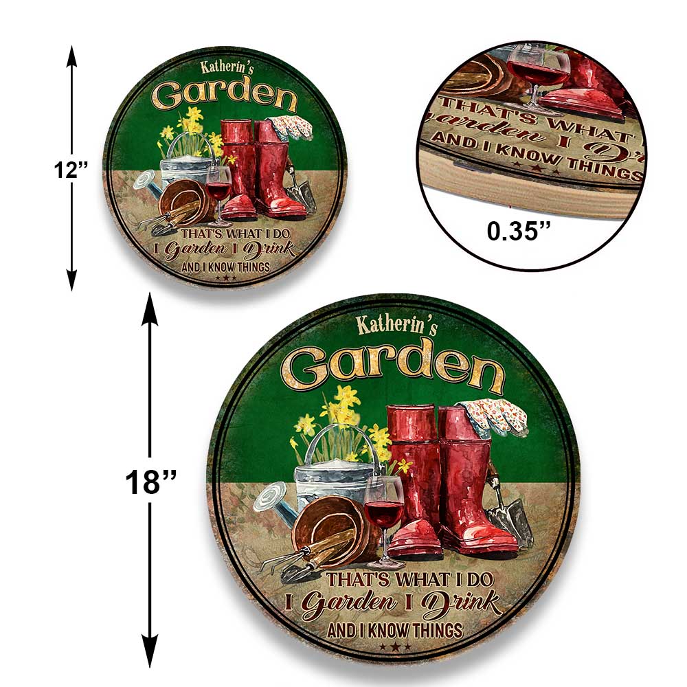 Personalized That's What I Do I Garden I Drink And I Know Things Garden Wood Round Sign