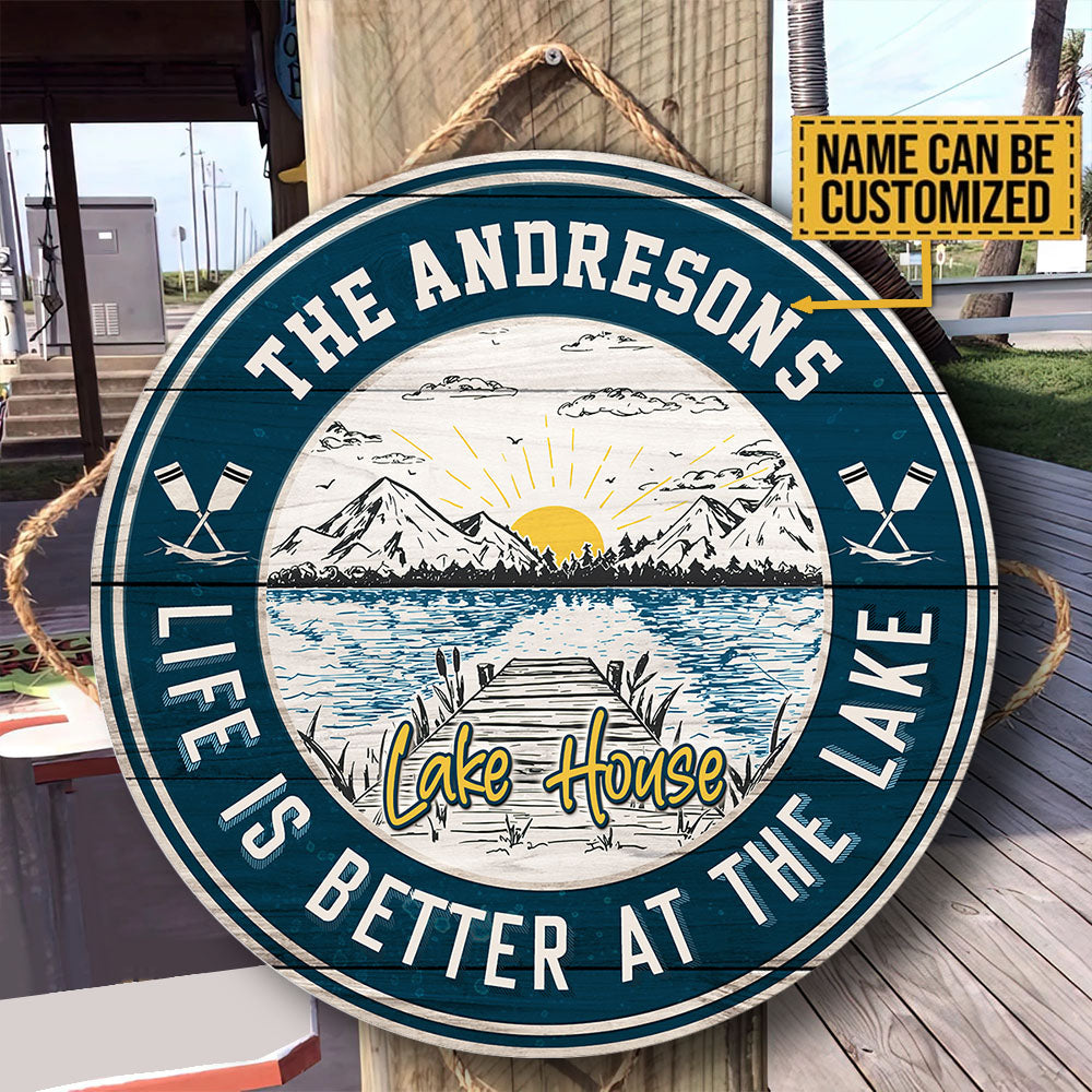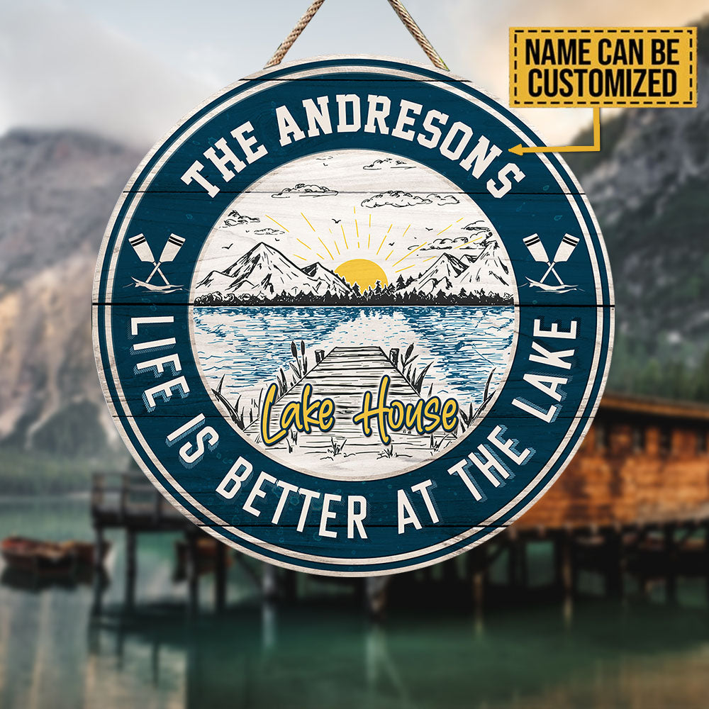 Personalized Lake House Wood Round Sign