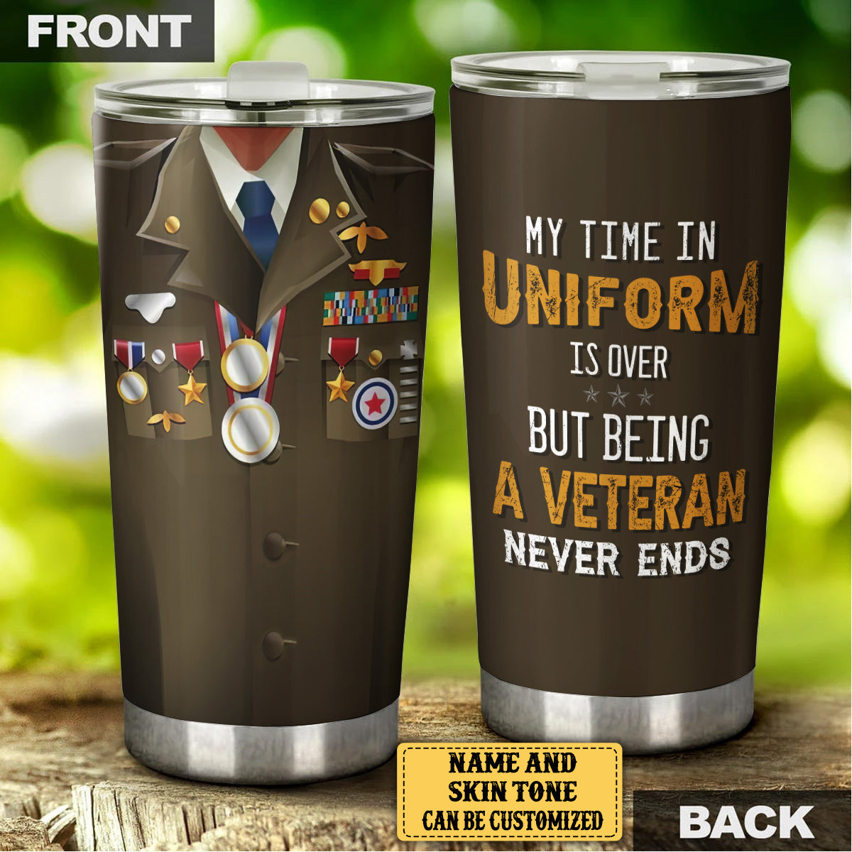Personalized My Time In Uniform Is Over But Being A Veteran Never Ends Tumbler