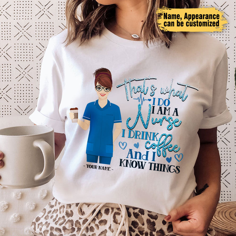 That's What I Do I Am A Nurse I Drink Coffee - Personalized Nurse Shirt