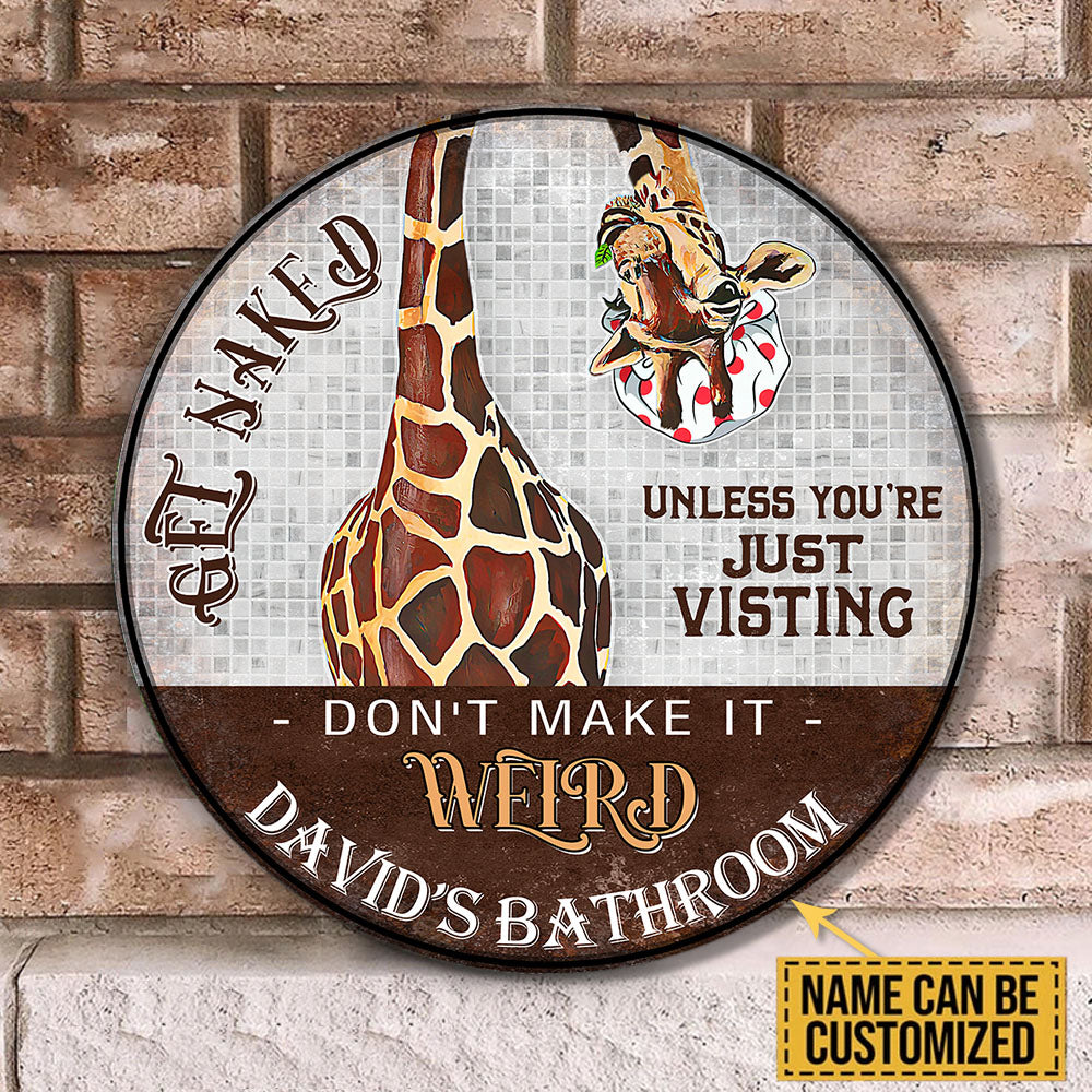 Personalized Giraffe Bathroom Get Naked Unless You're Just Visiting Don't Make It Weird Wood Round Sign