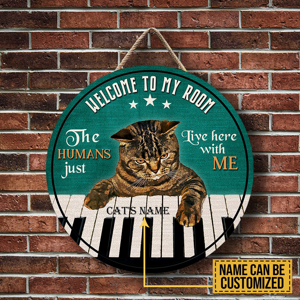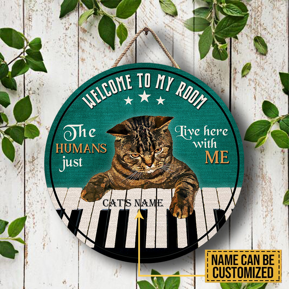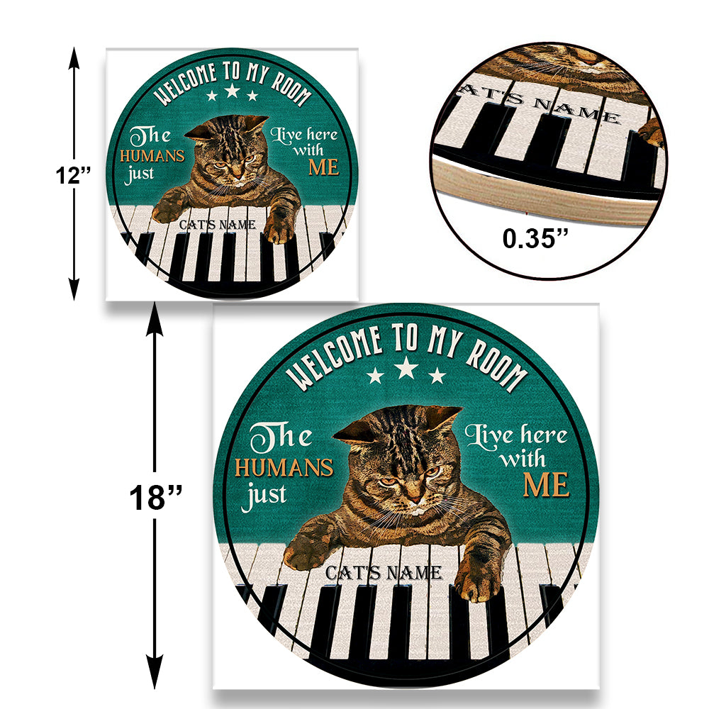 Personalized Welcome To My Room Cat Piano Wood Round Sign