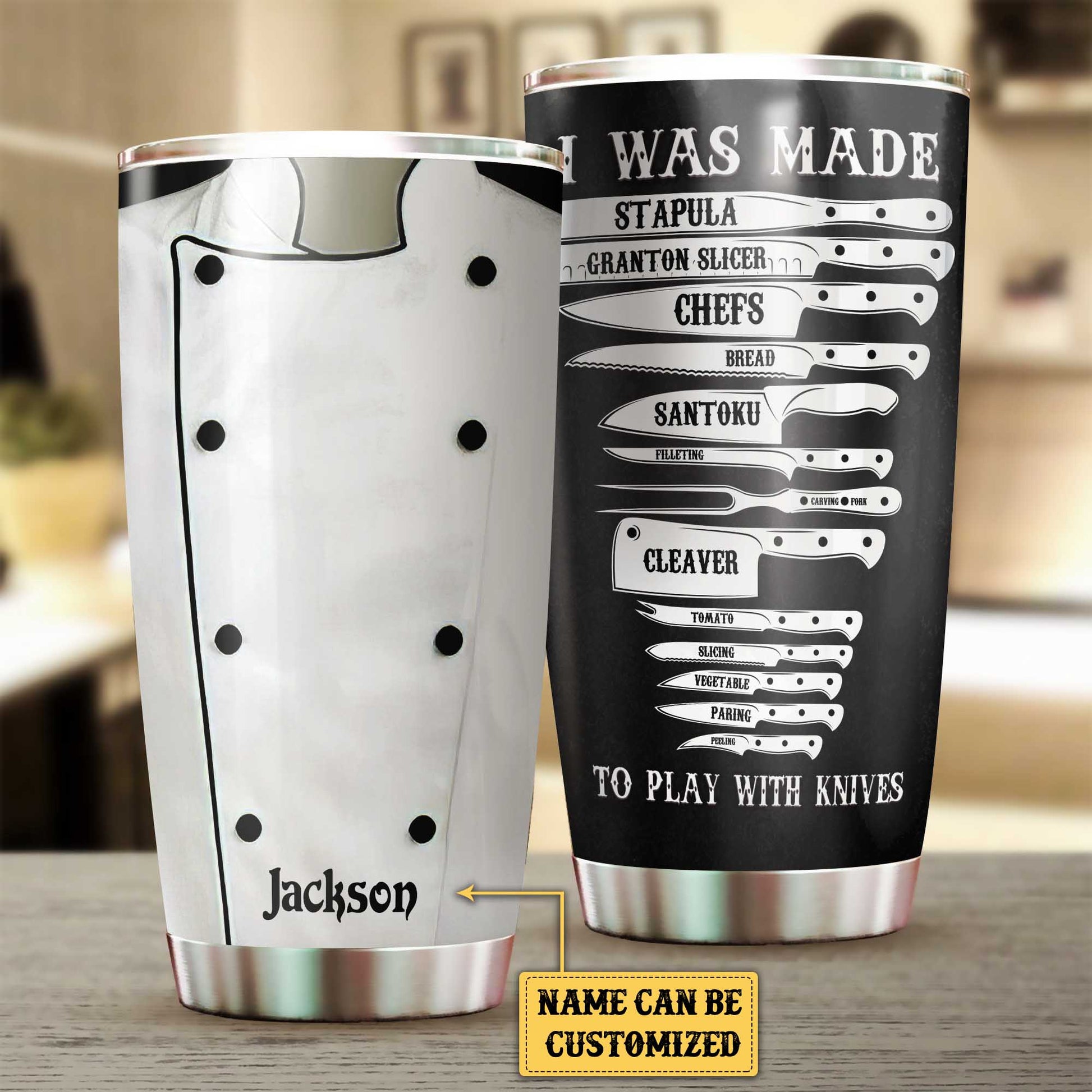 Personalized Cooking I Was Made To Play With Knives Chef Tumbler