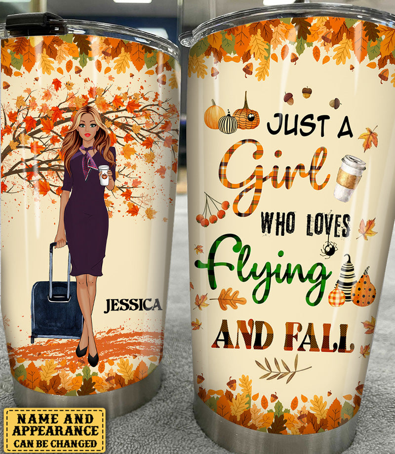 Personalized Flight Attendant Just A Girl Who Loves Flying And Fall Tumbler