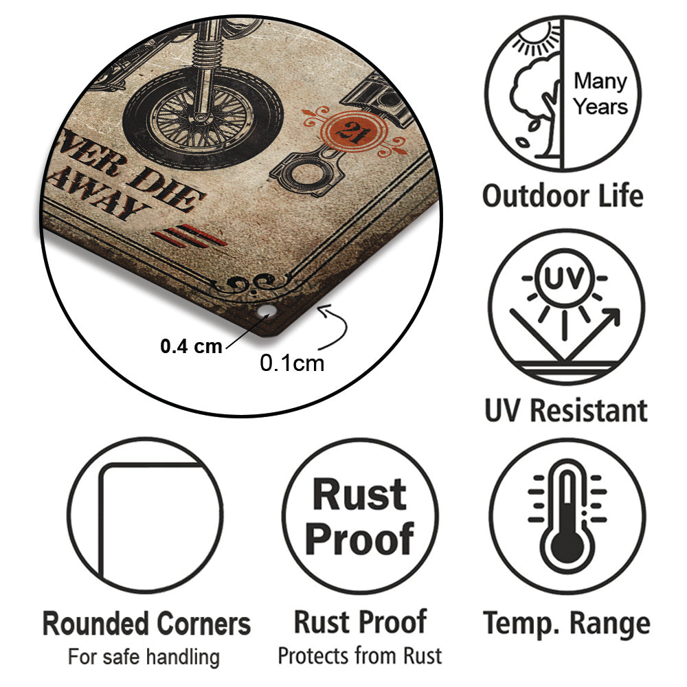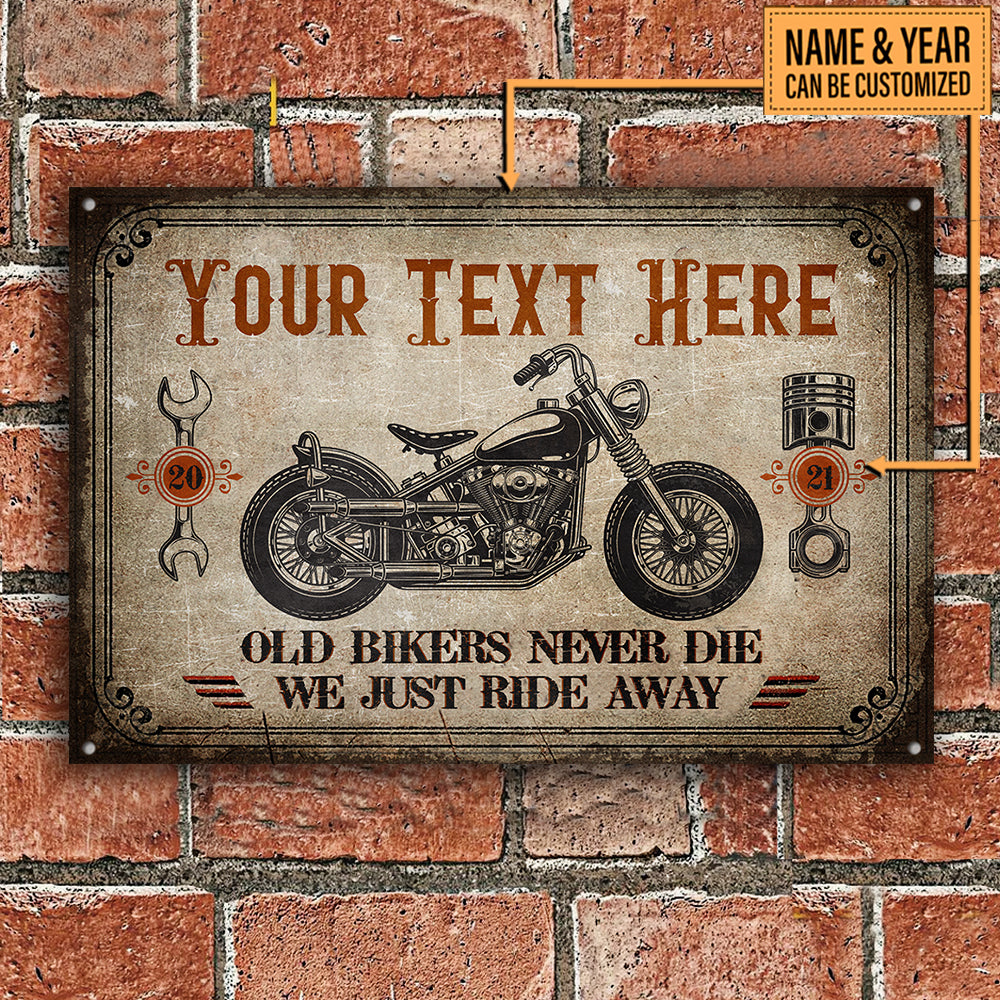 Personalized Old Bikers Never Die We Just Ride Away Classic Metal Sign