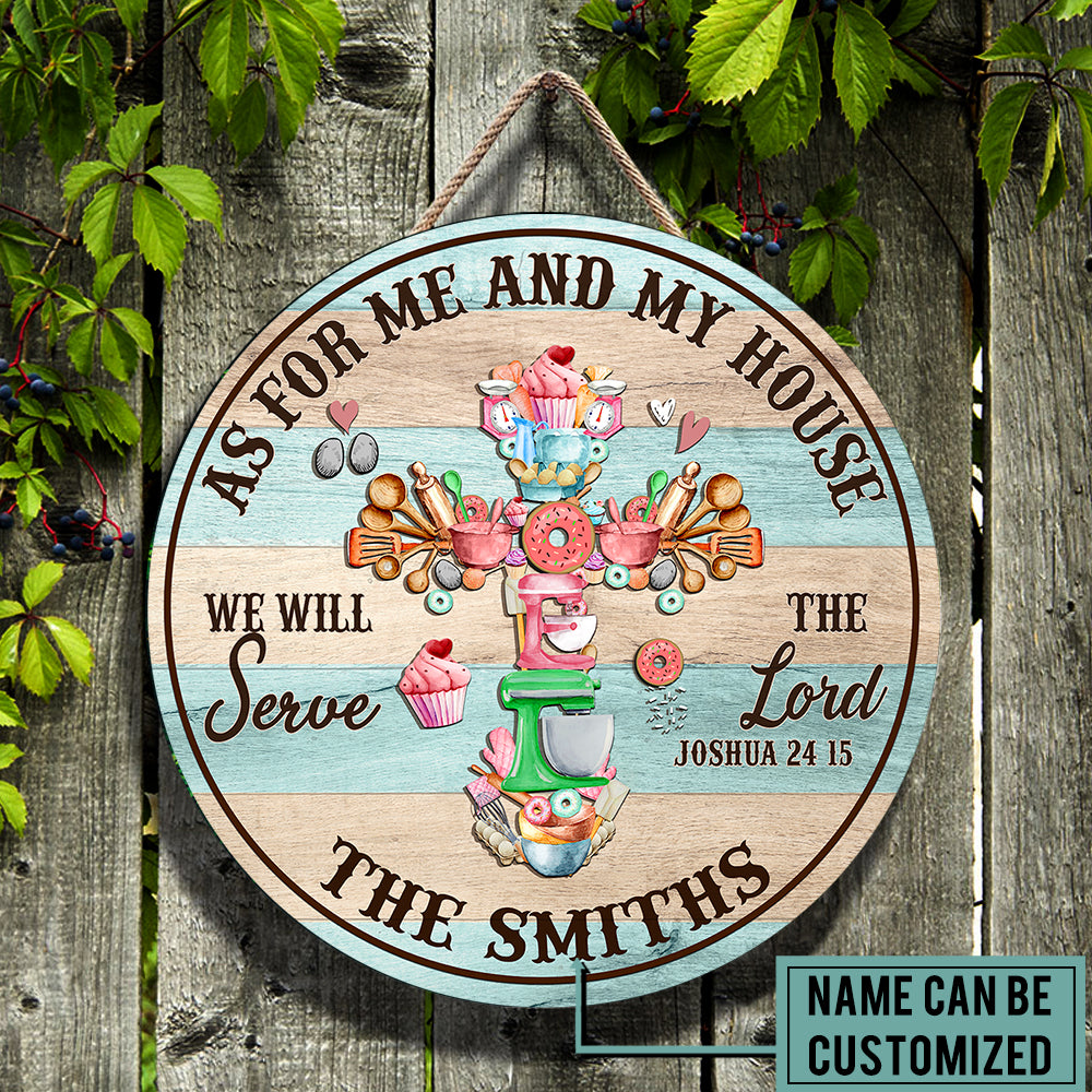 Personalized As For Me And My House We Will Serve The Lord Baking Wood Round Sign