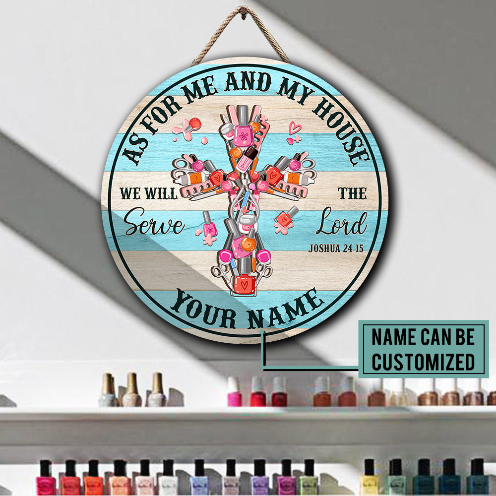 Personalized As For Me And My House We Will Serve The Lord Nail Artist Wood Round Sign