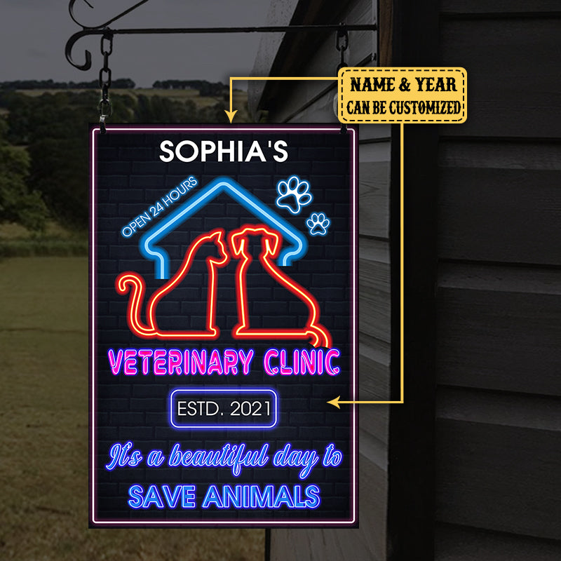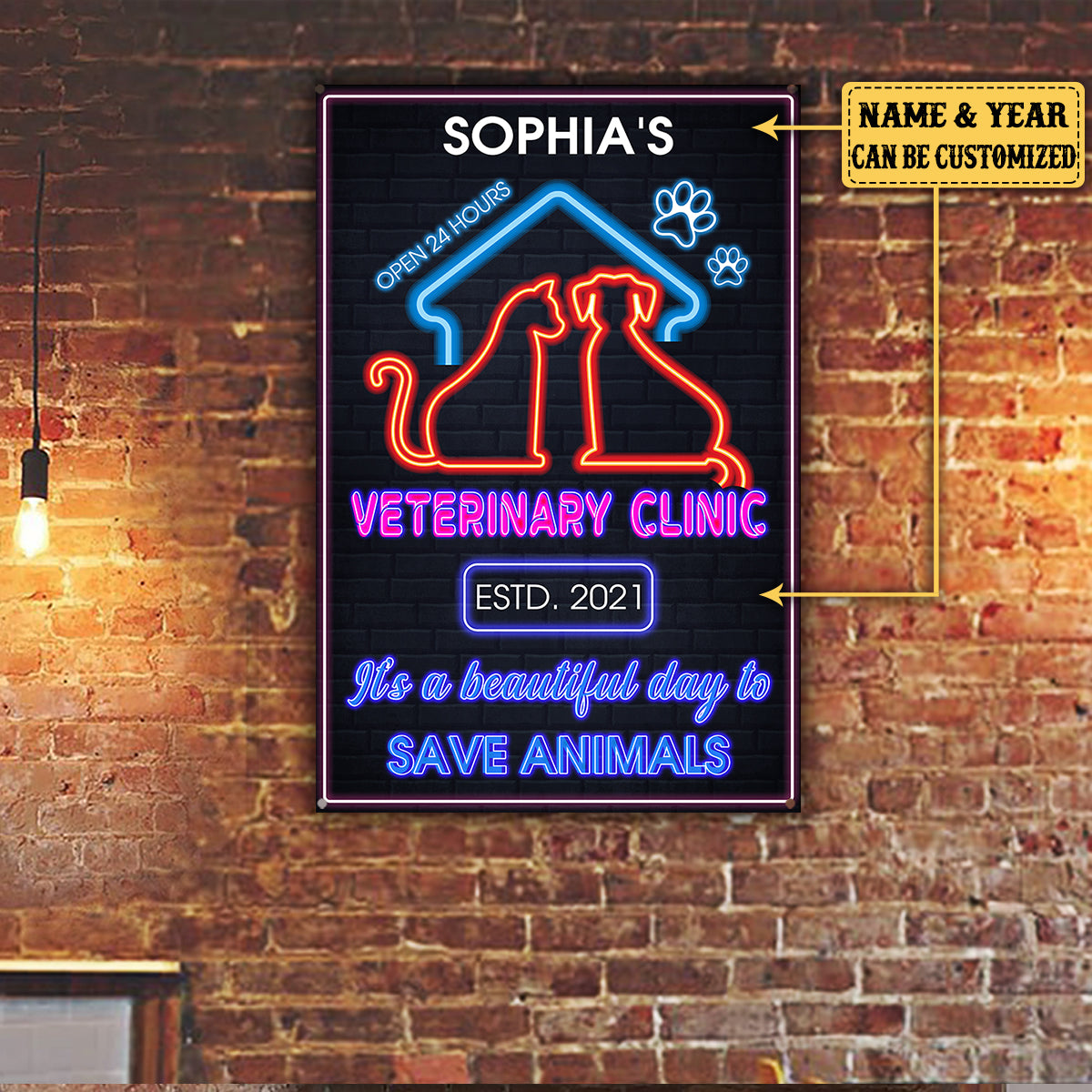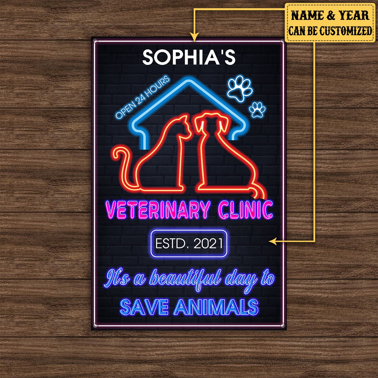 Personalized Veterinary Clinic It's A Beautiful Day To Save Animals Metal Sign