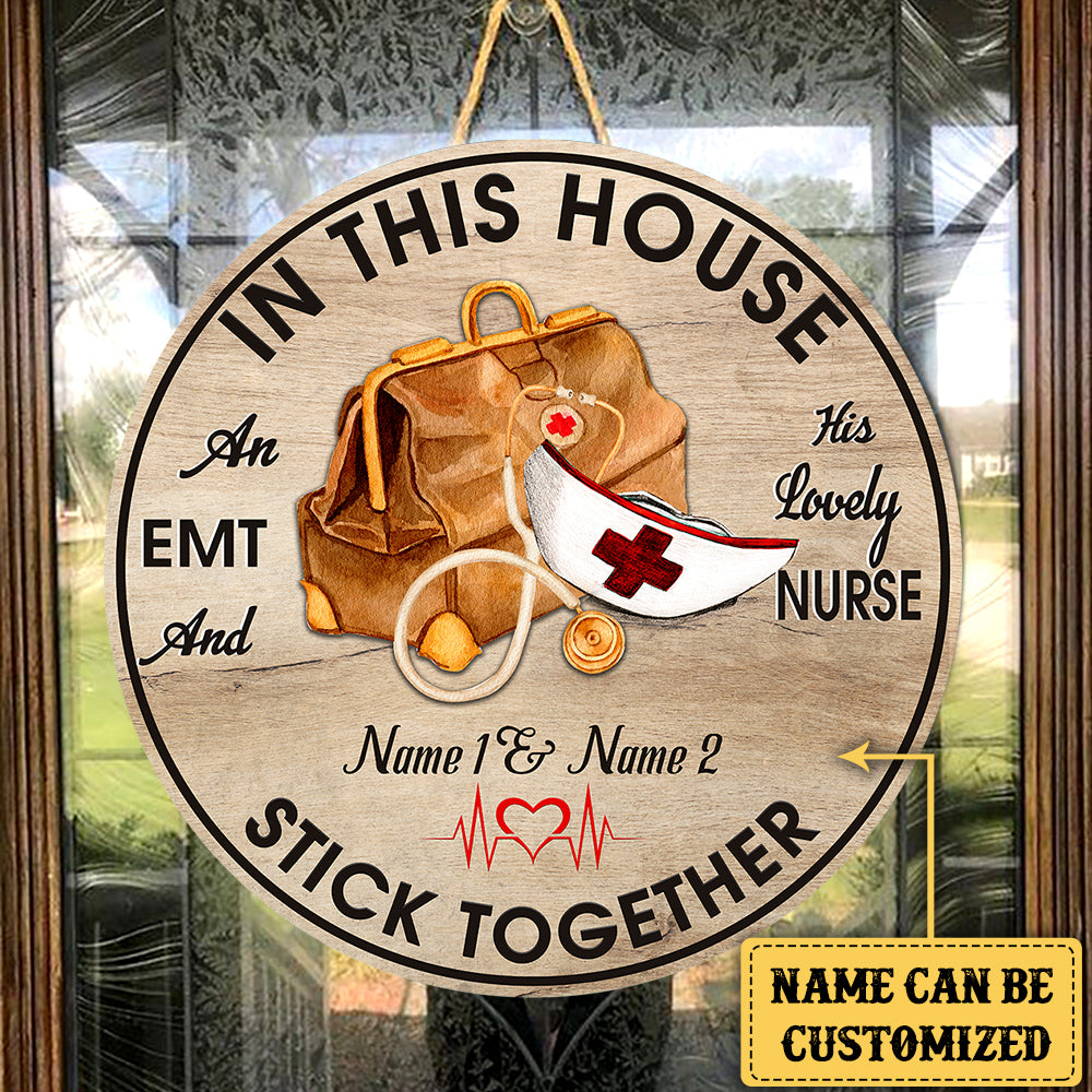 Personalized An EMT And His Lovely Nurse Live Here Wood Round Sign