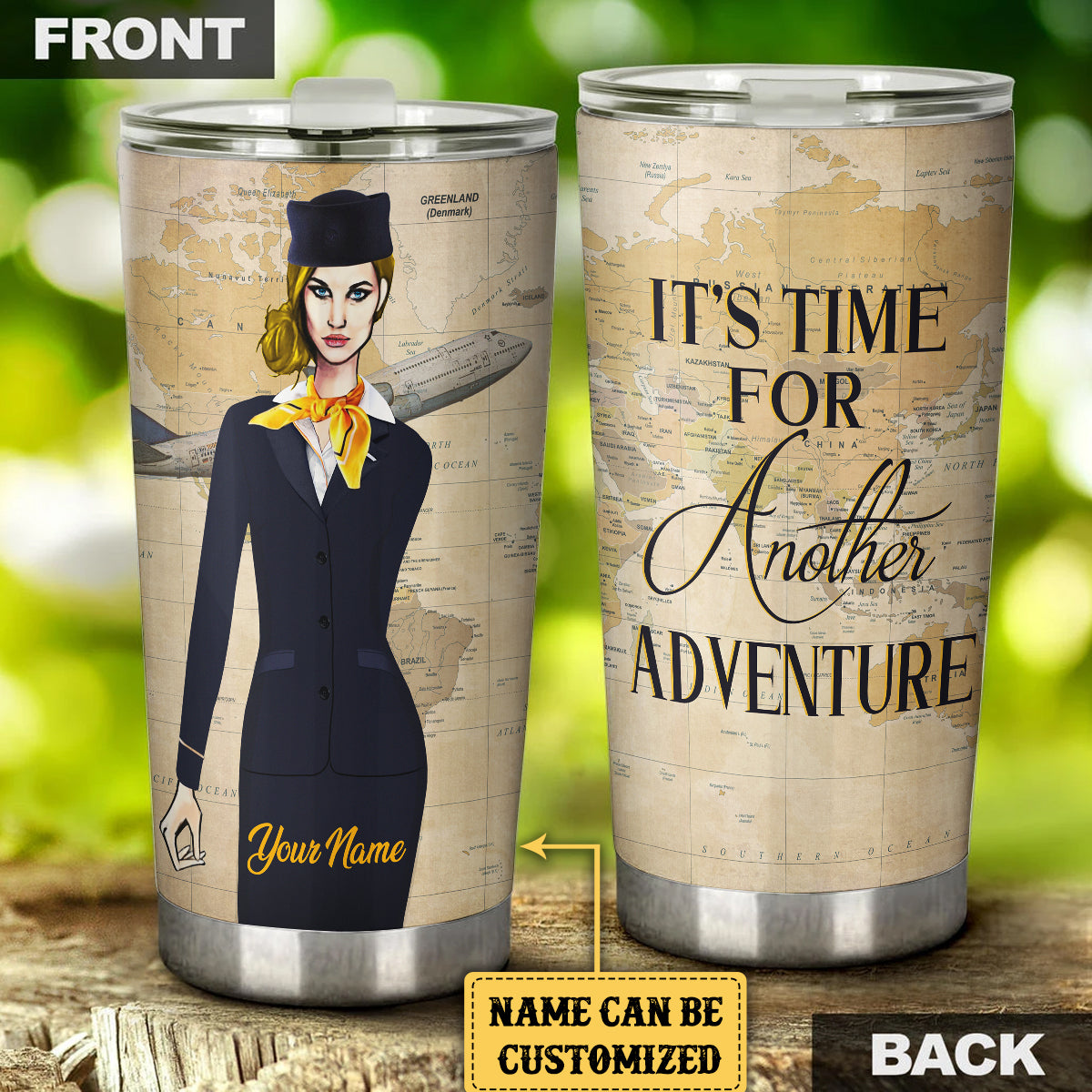 Personalized It's Time For Another Adventure Flight Attendant Tumbler