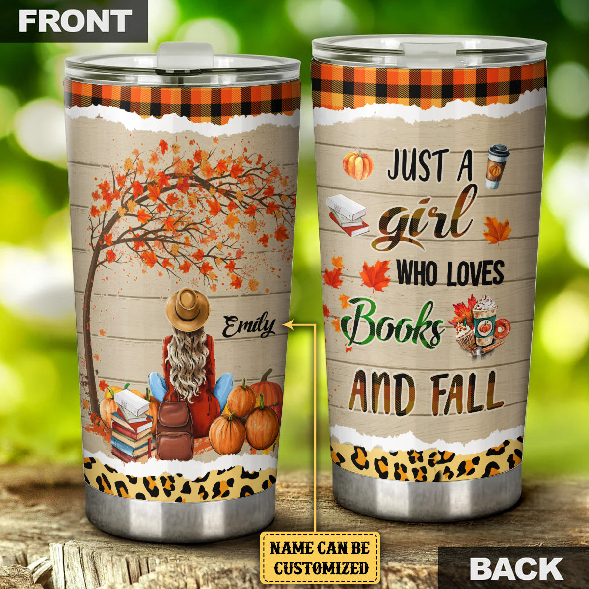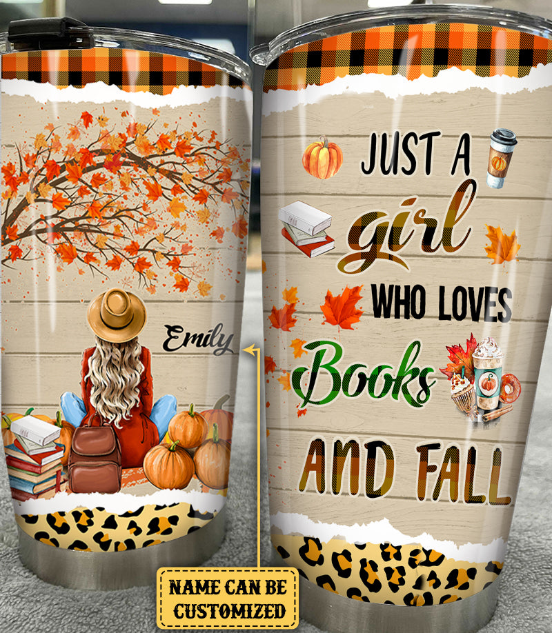 Personalized Just A Girl Who Loves Books And Fall Tumbler