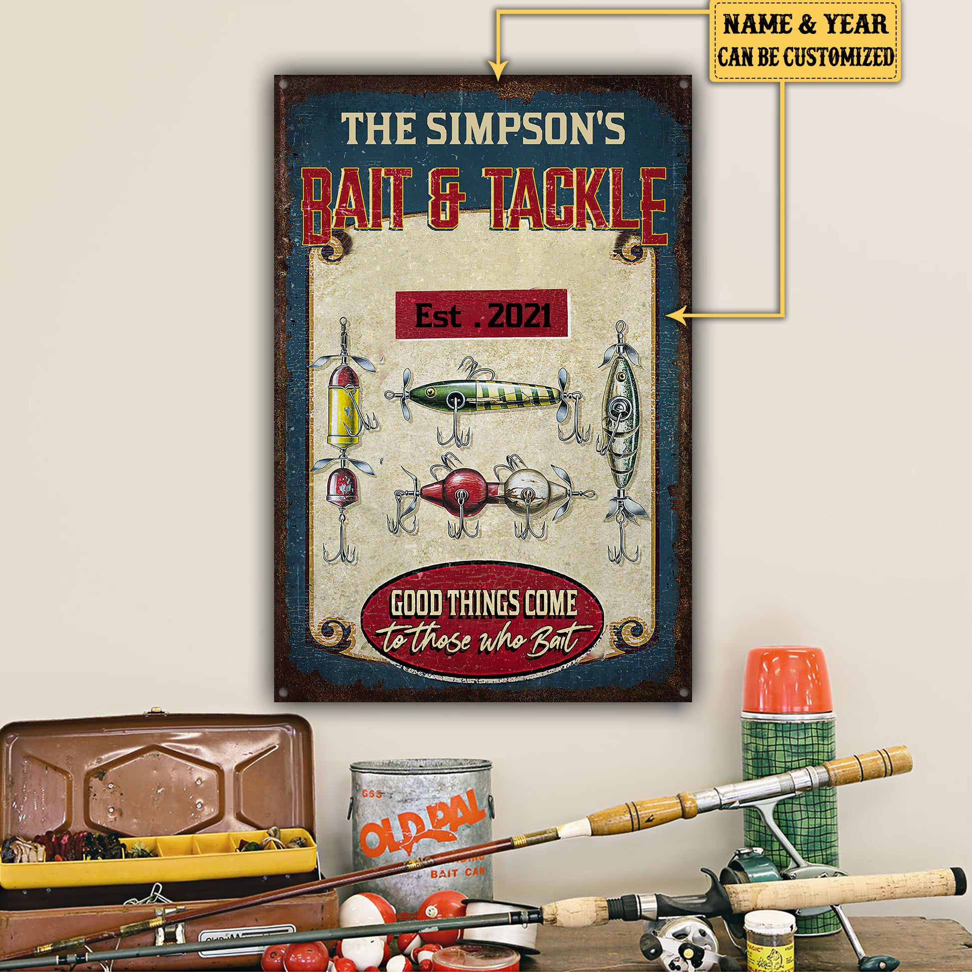 Personalized Bait And Tackle Fishing Good Things Come To Those Who Bait Metal Sign
