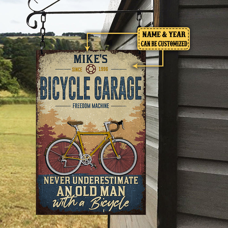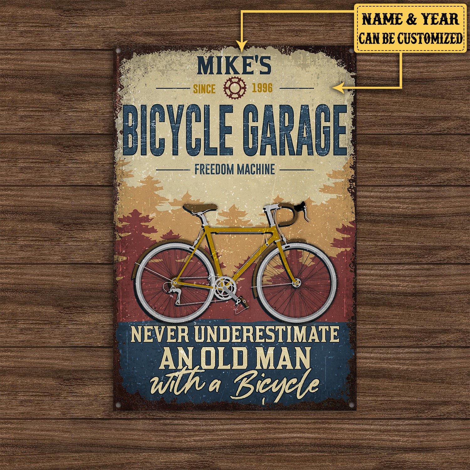 Personalized Bicycle Garage Never Underestimate An Old Man With A Bicycle Metal Sign