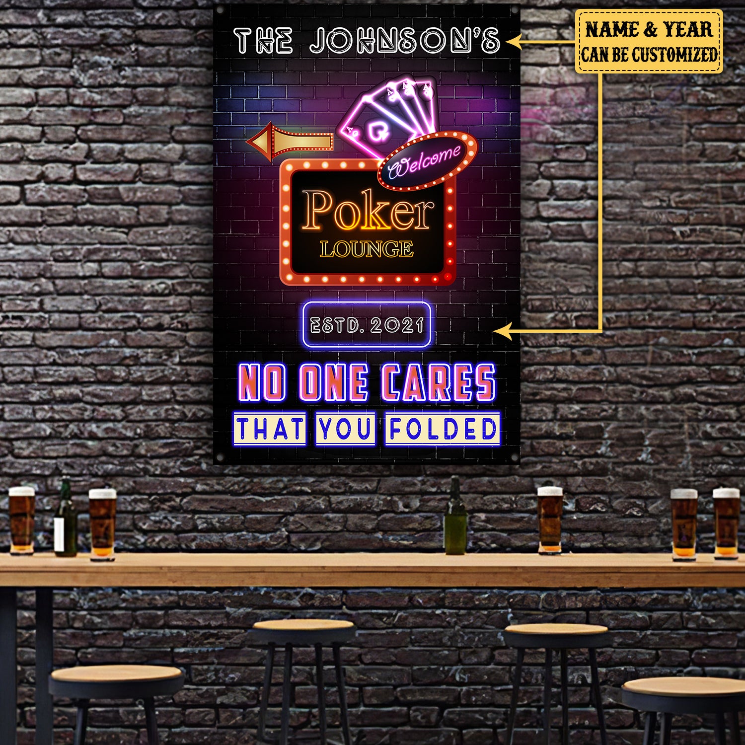 Personalized Poker Lounge No One Cares That You Folded Metal Sign