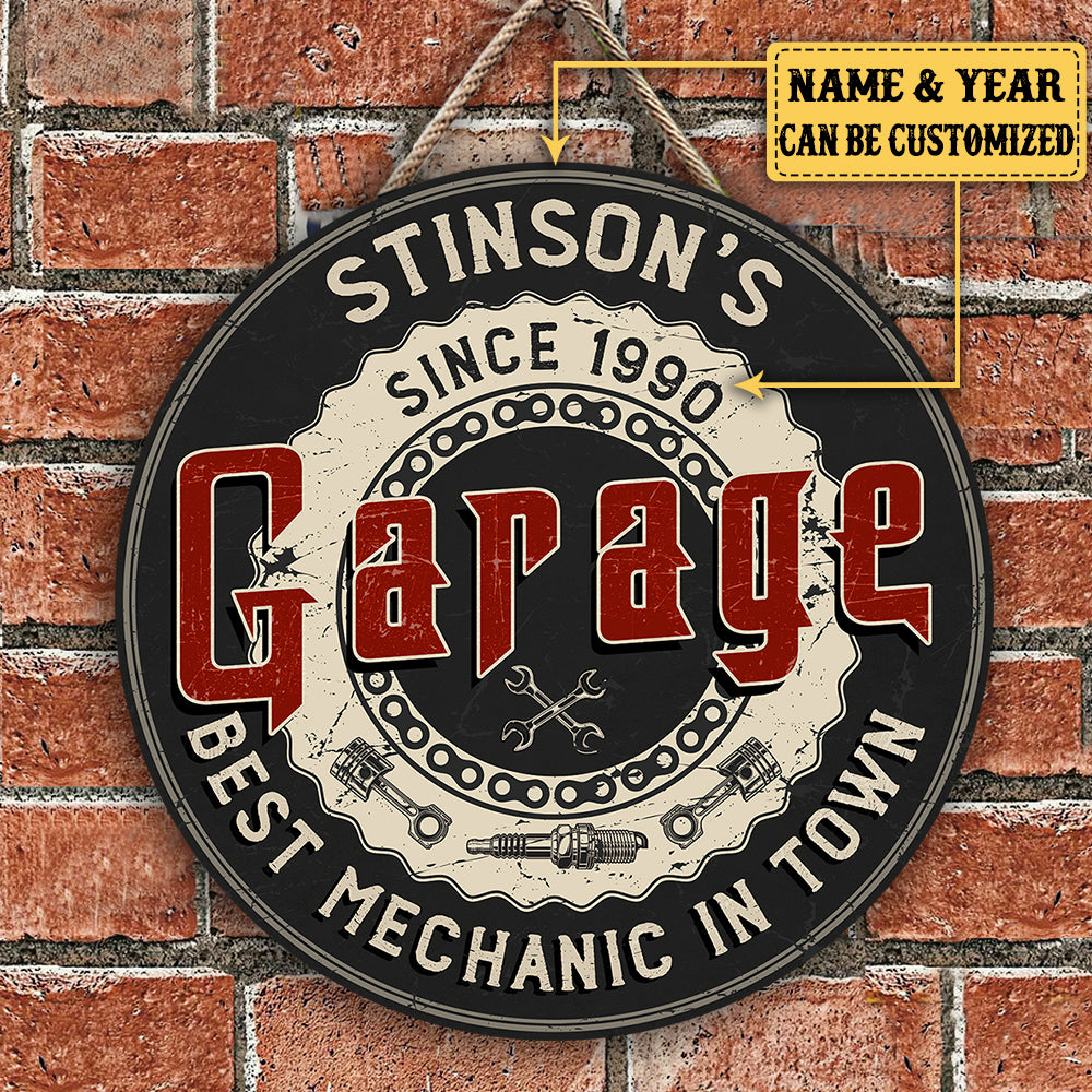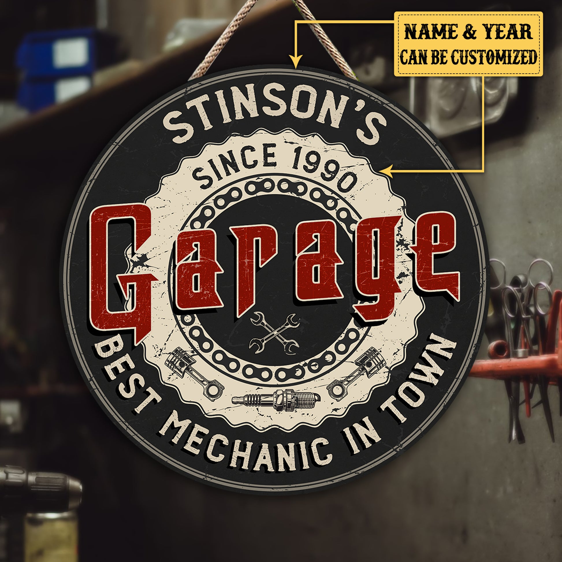 Personalized Garage Best Mechanic In Town Wood Round Sign