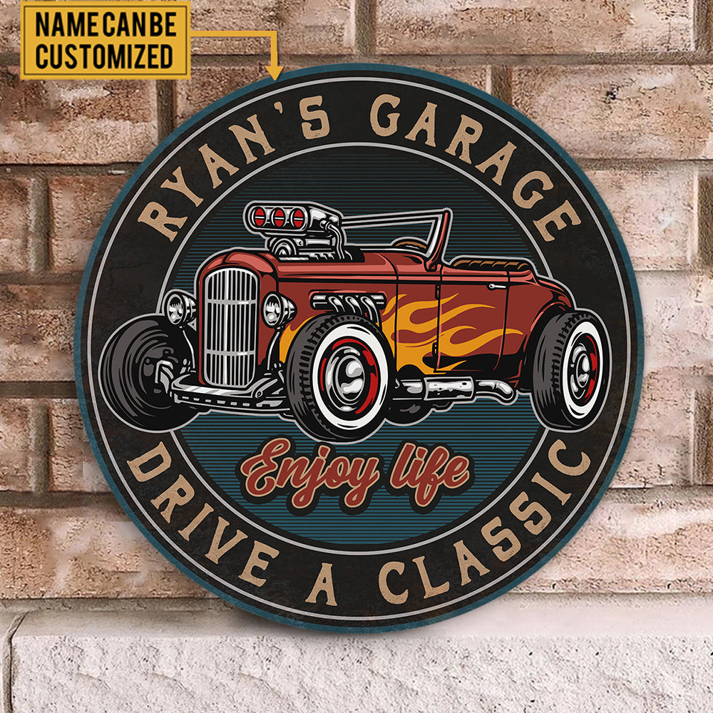 Personalized Hot Rod Garage Wood Round Sign