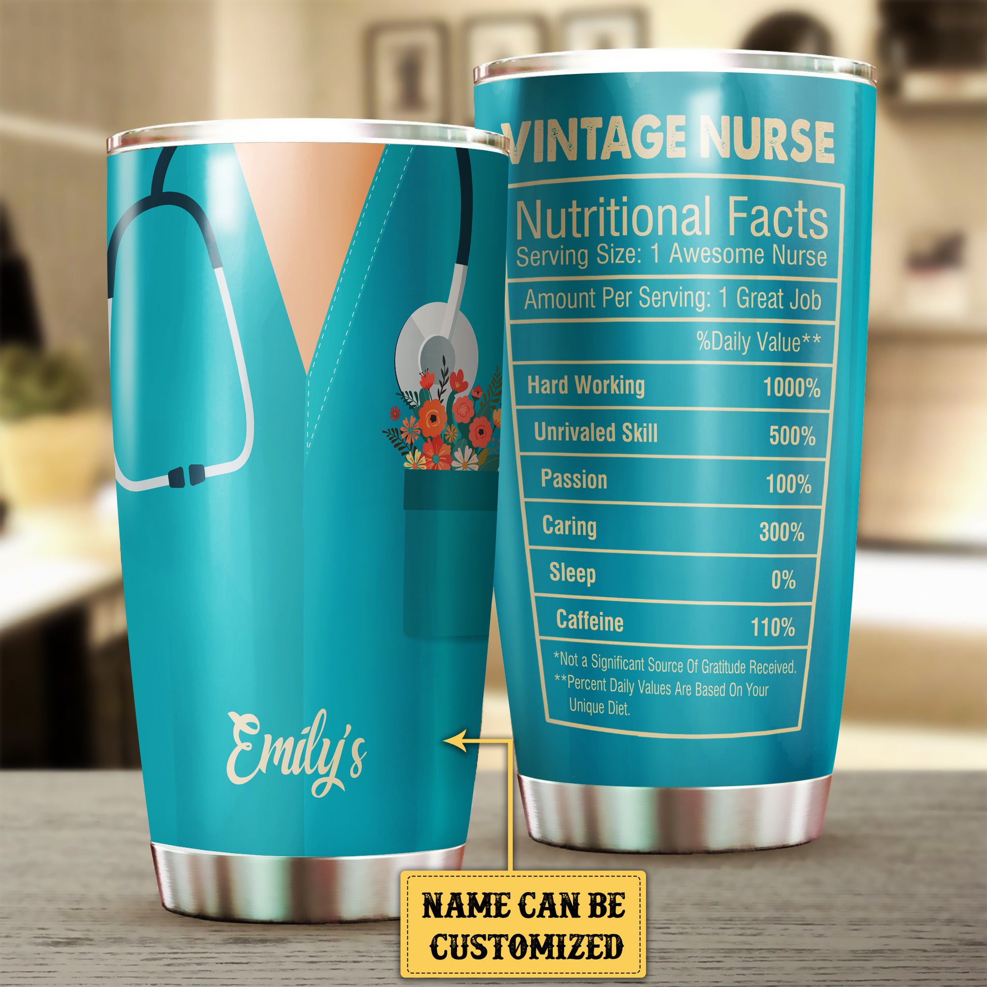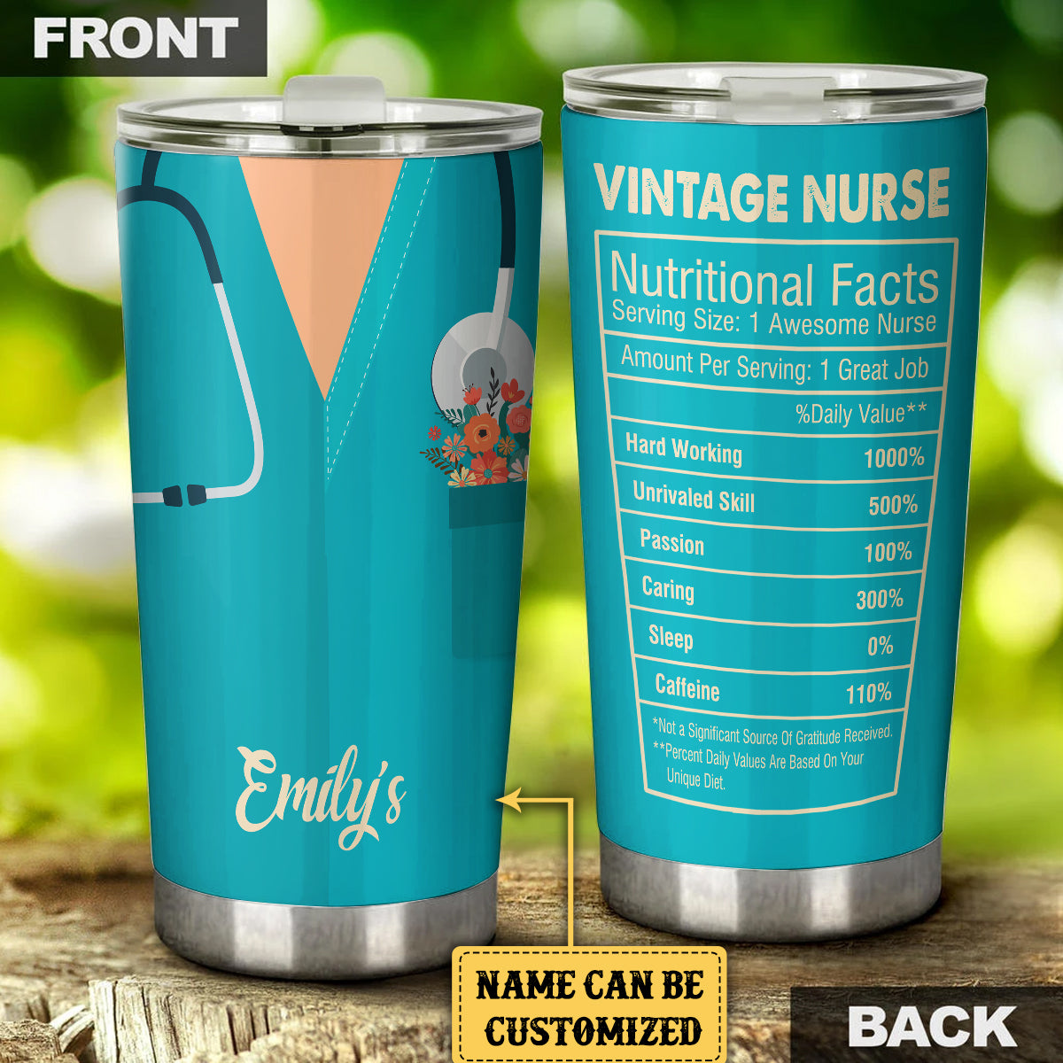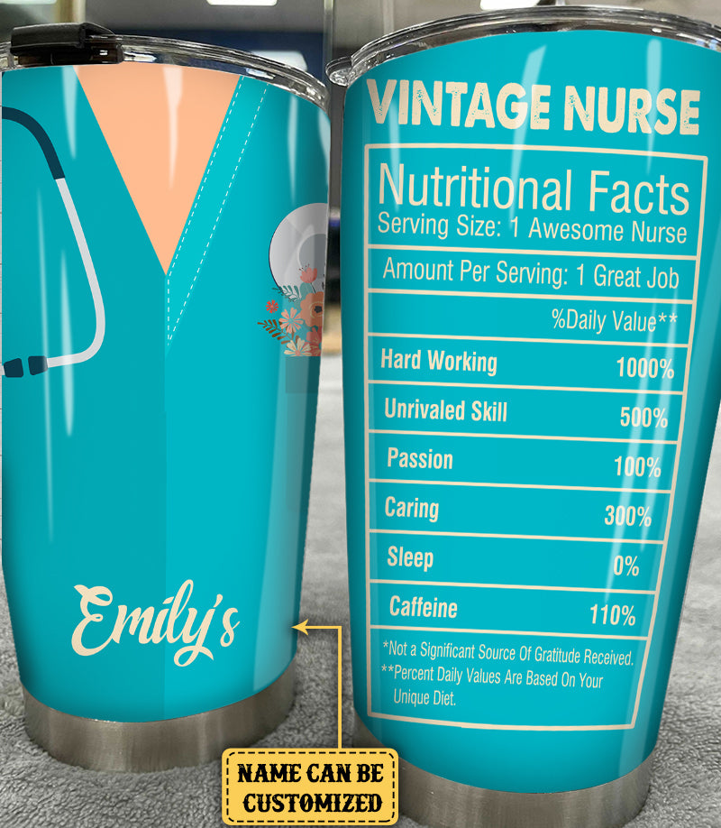 Personalized Vintage Nurse Nutritional Facts Tumbler