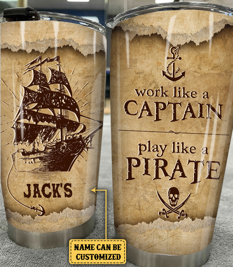 Personalized Work Like A Captain Play Like A Pirate Tumbler