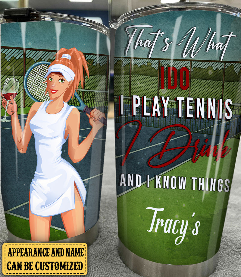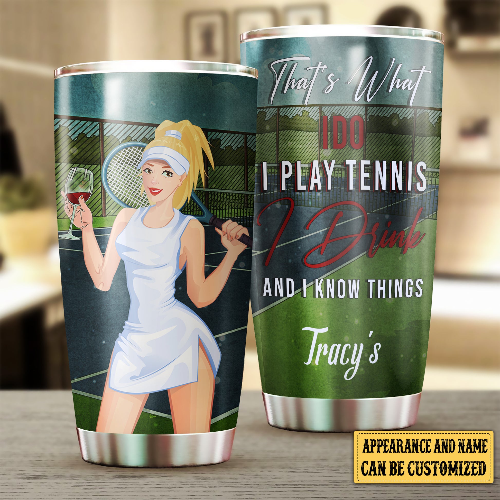 Personalized That's What I Do I Play Tennis I Drink And I Know Things Tumbler