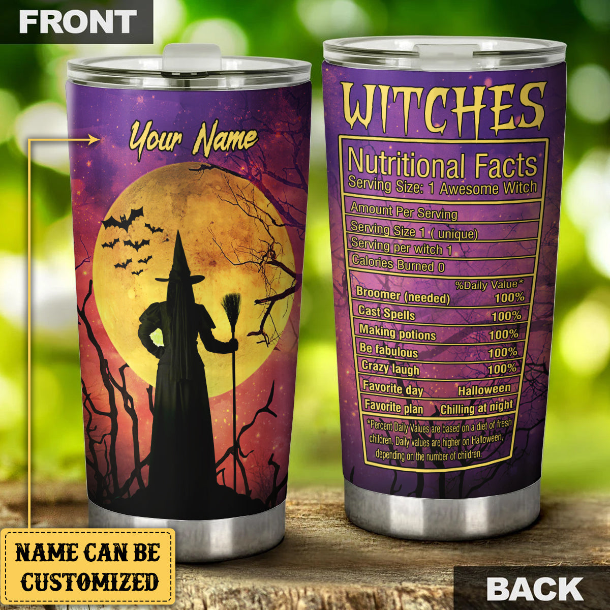 Personalized Witches Nutritional Facts Tumbler