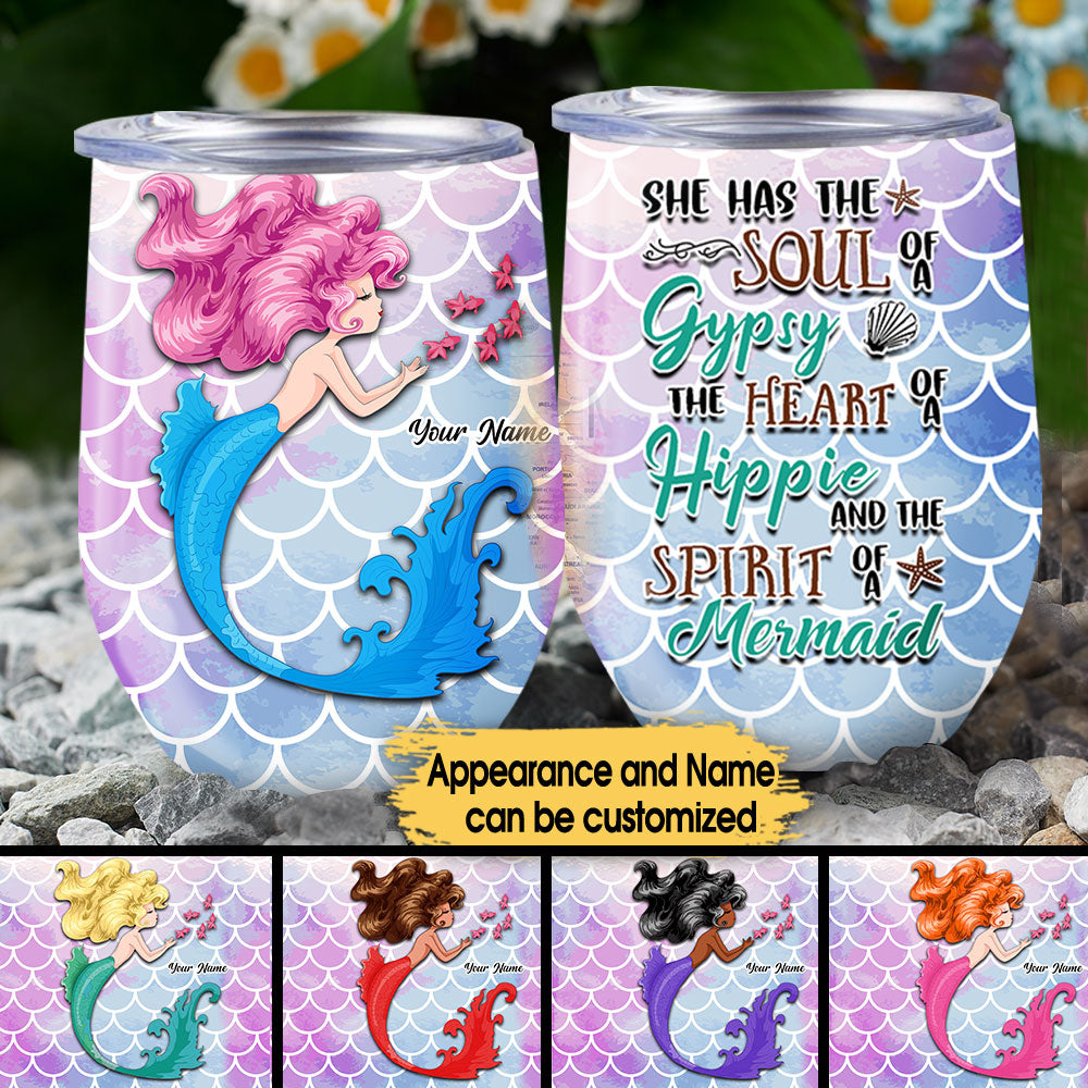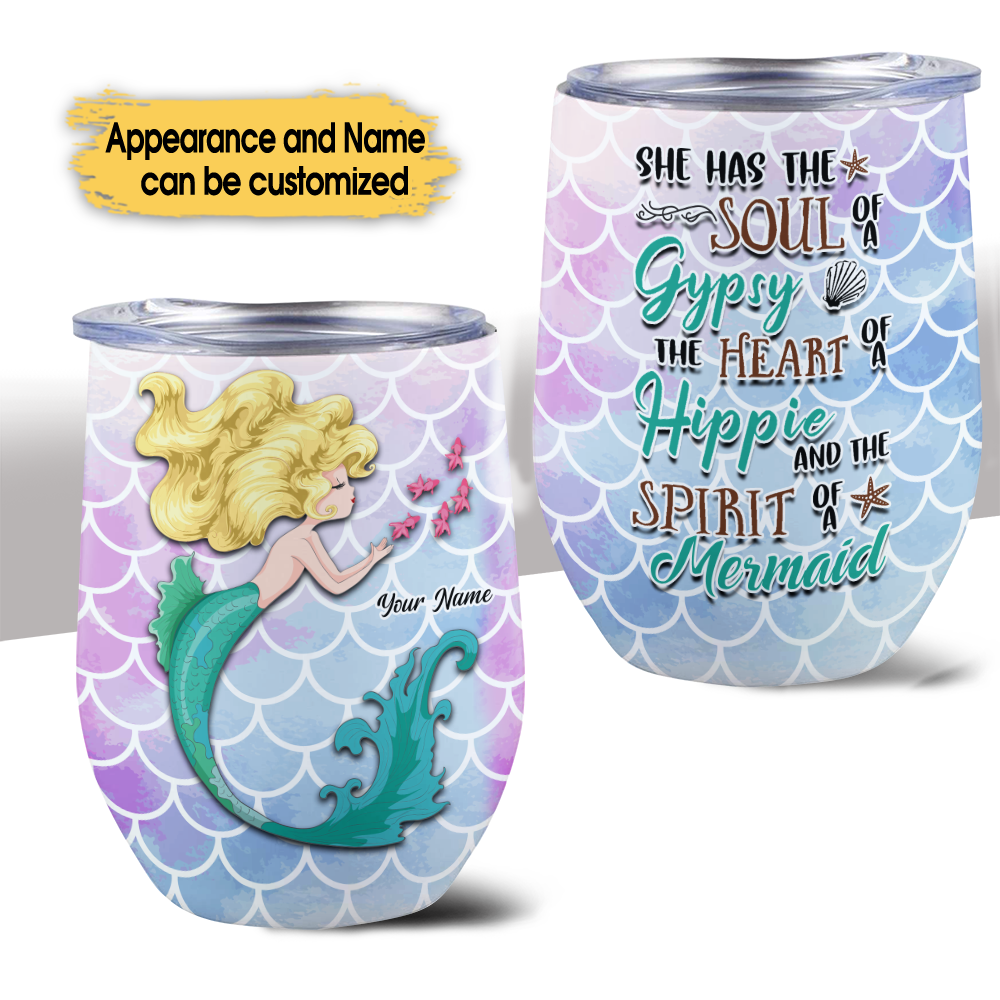 She Has The Soul Of A Gypsy The Heart Of A Hippie And The Spirit Of A Mermaid - Personalized Wine Tumbler