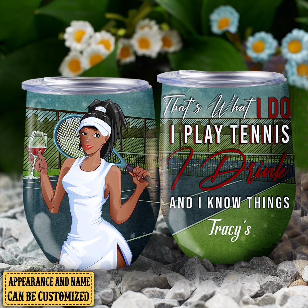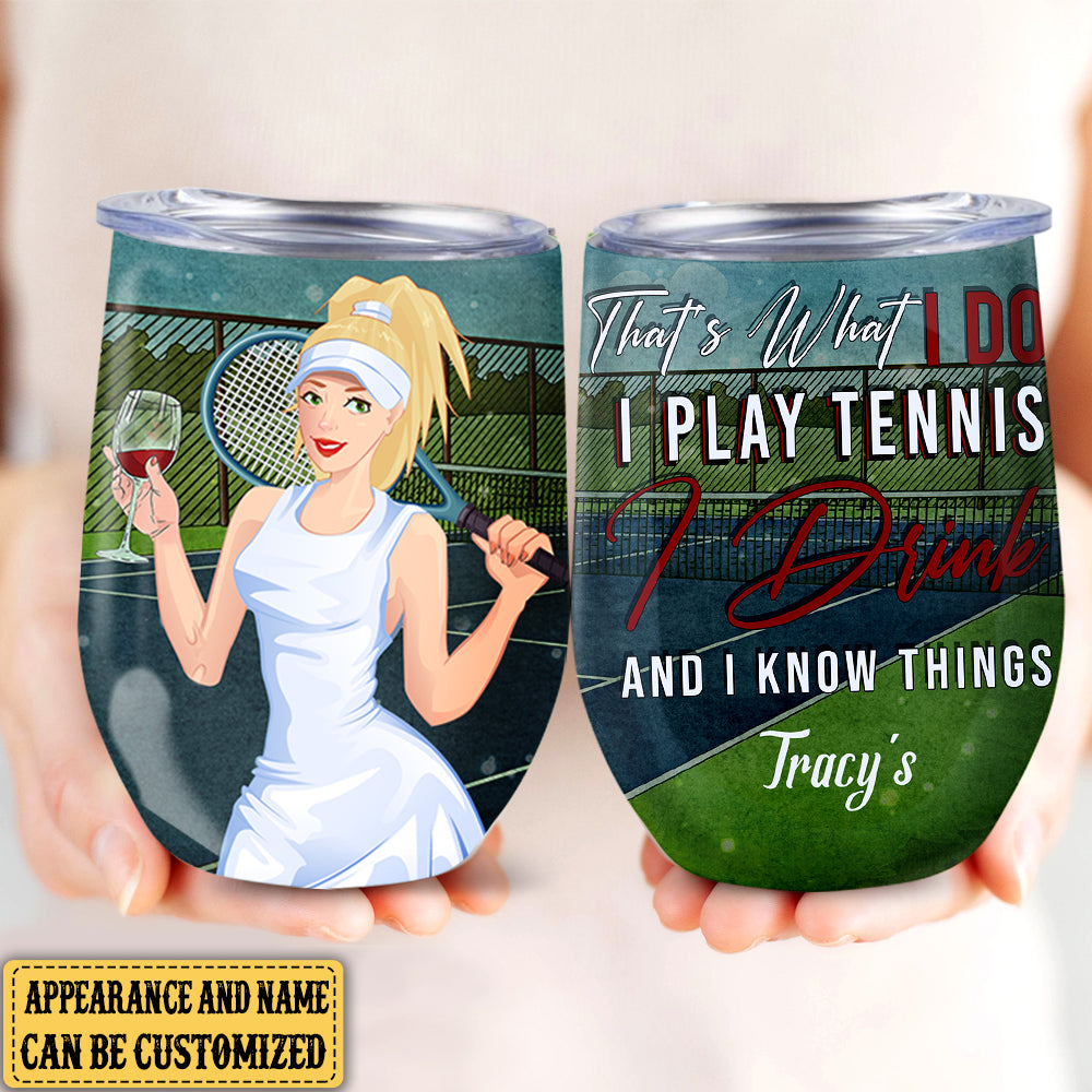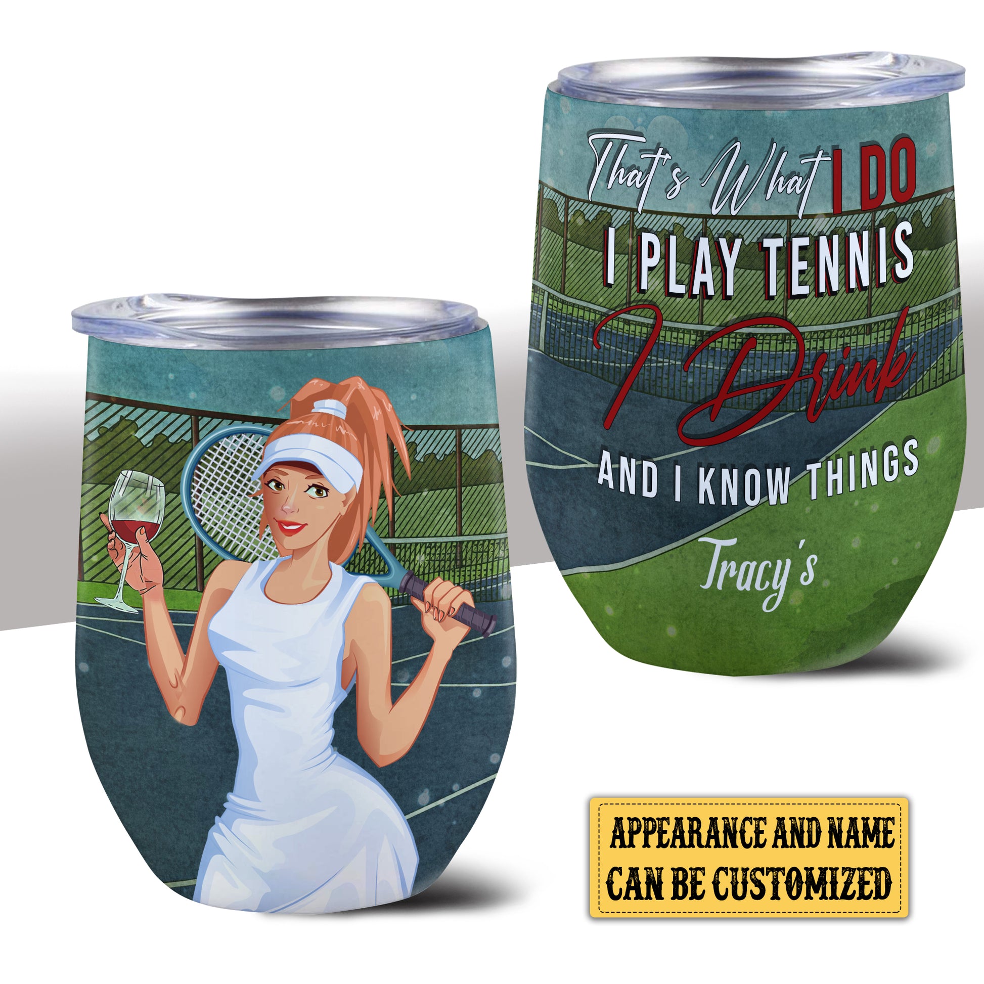 Personalized That's What I Do I Play Tennis I Drink And I Know Things Wine Tumbler