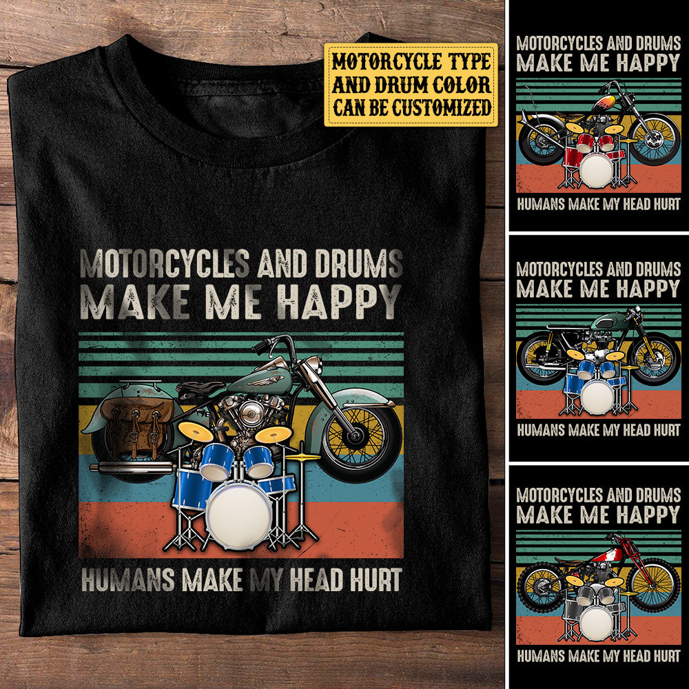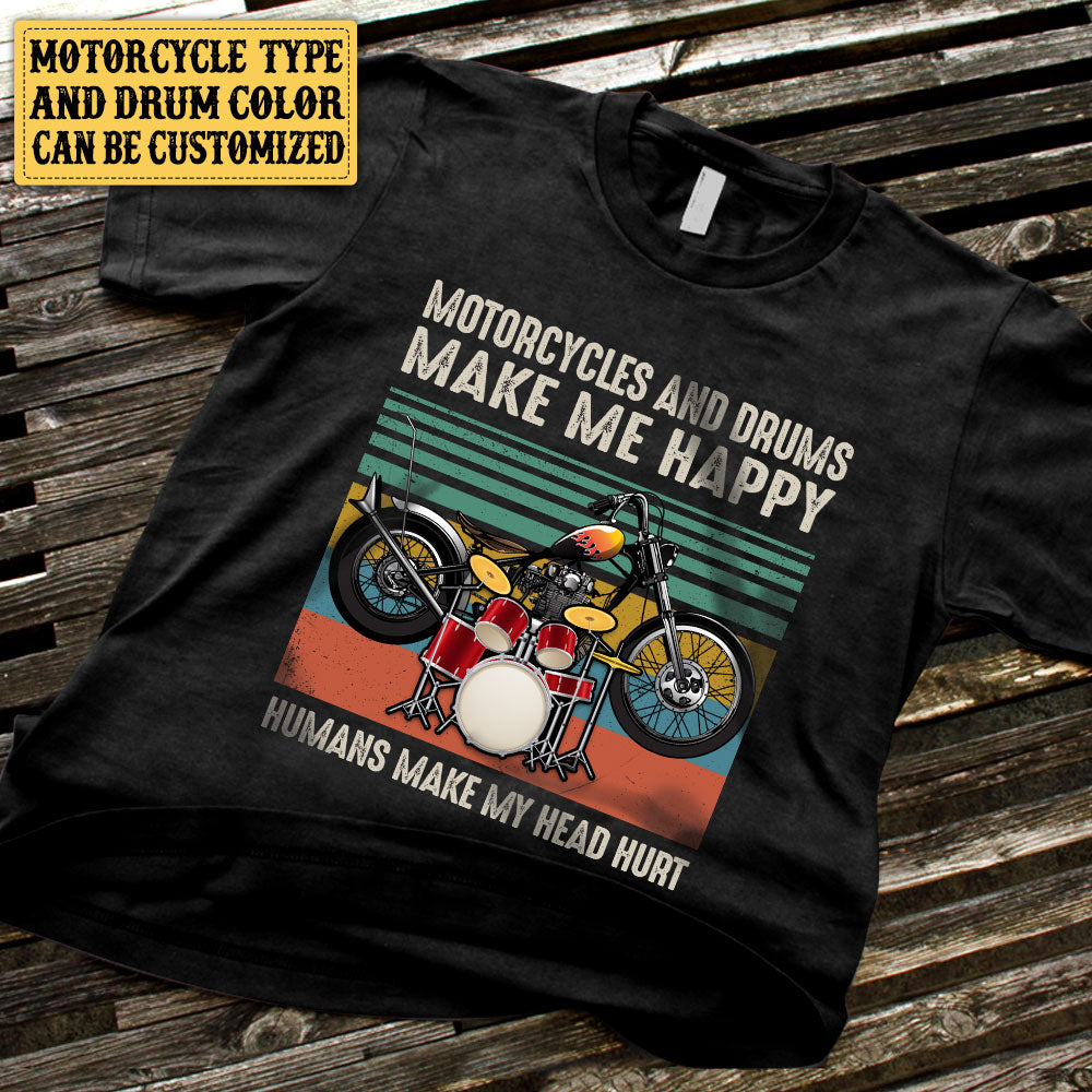 Personalized Motorcycles And Drums Make Me Happy Vintage Shirt