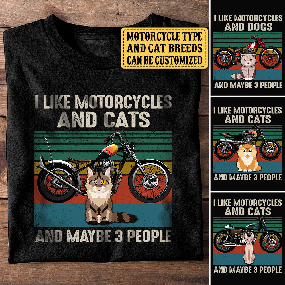 Personalized I Like Motorcycles And Cats And Maybe 3 People Shirt